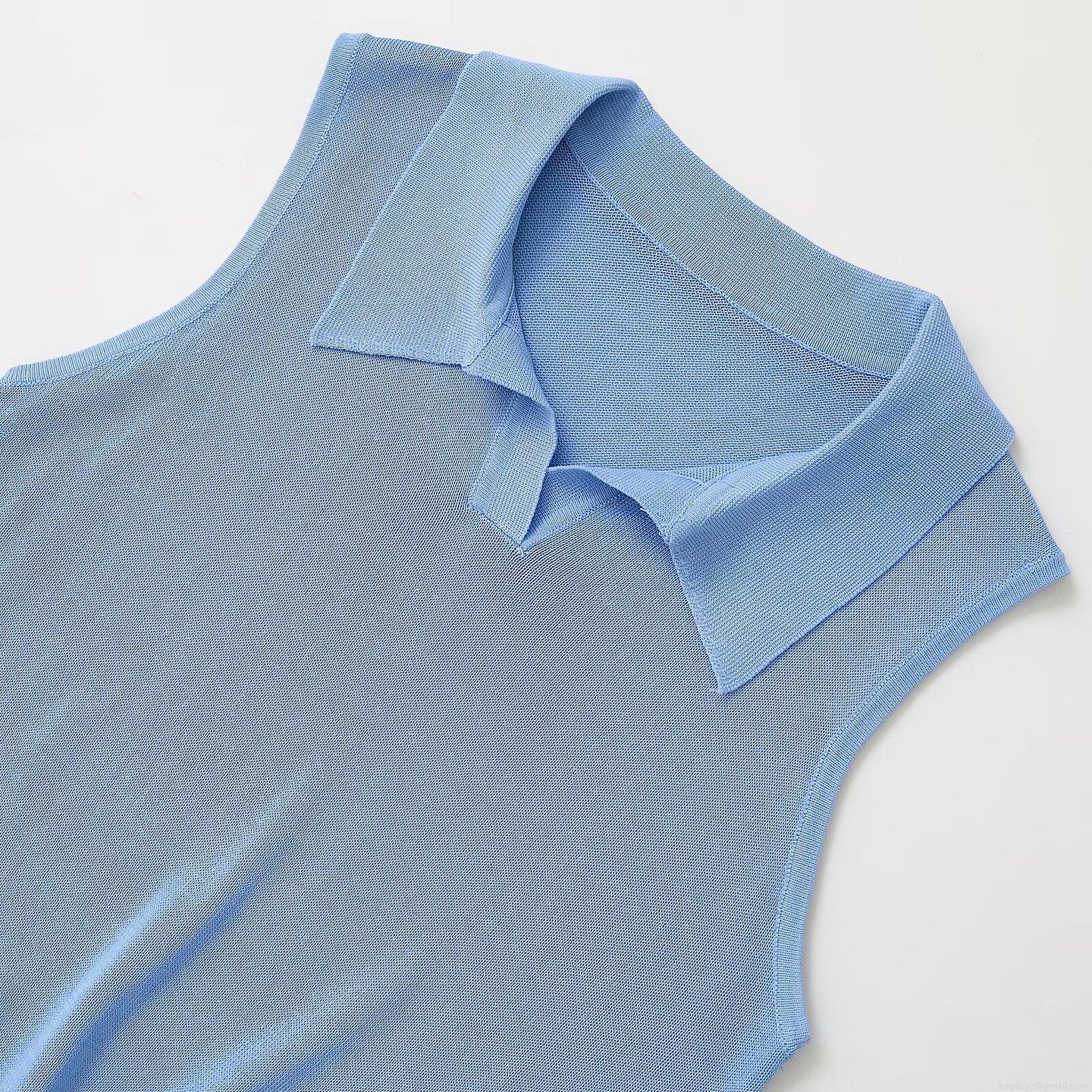 • Women's Sleeveless Knit Polo Shirt Mercerized Cotton Solid Color Casual Tank Top Summer Office Commuting Breathable Soft Vest For Ladies