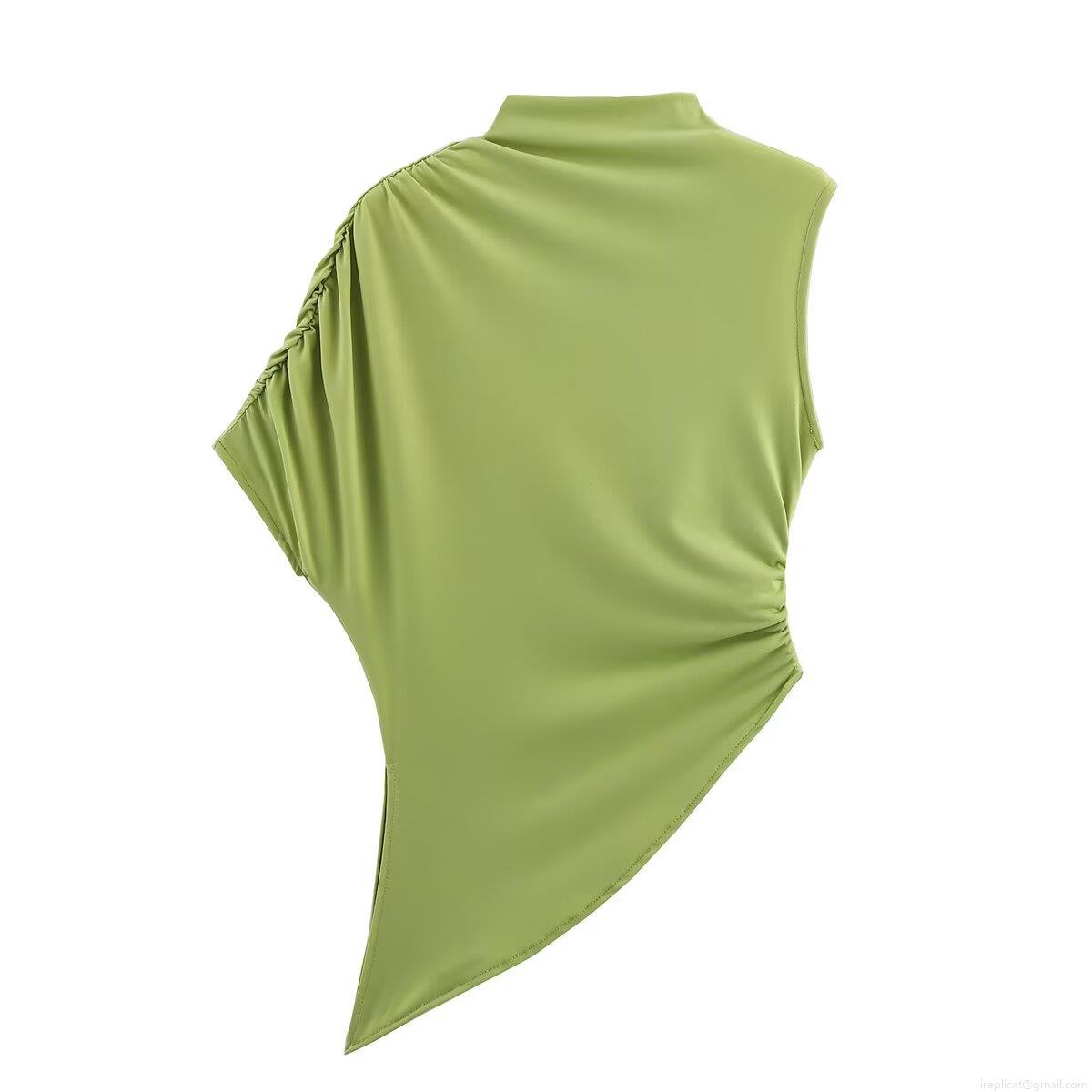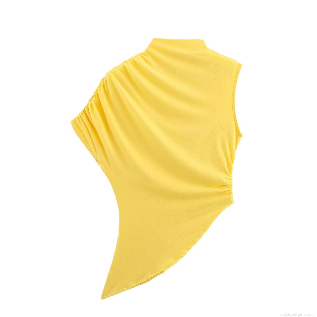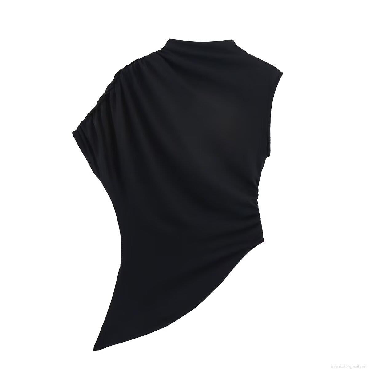 • Women's Sleeveless Mock Neck Asymmetrical T-Shirt Sexy Ruched Side Pleated Hem Polyester Knit Top Solid Color Streetwear Summer Casual Slim Fit Vest For Women