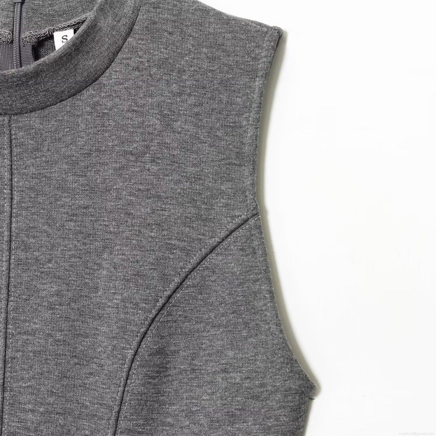 Solid Color, Splice, Zipper, Mock Neck, Ruffled Hem, Slim A-line