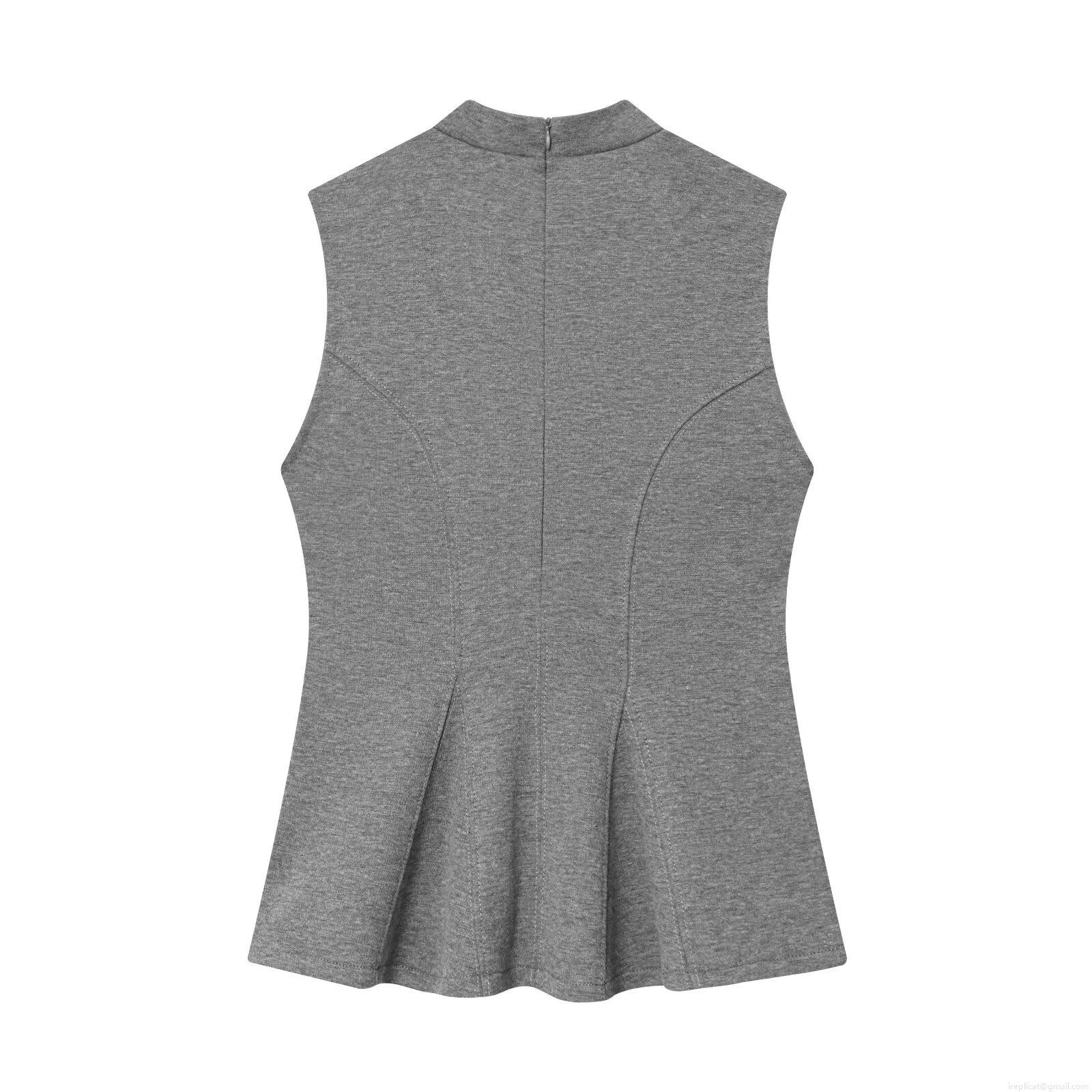 Women's Sleeveless Mock Neck Peplum Top Elegant Slim Fit Knit Blouse Minimalist A-Line Waist Top For Daily Office Wear Solid Color Polyester Spandex High Collar Shirt