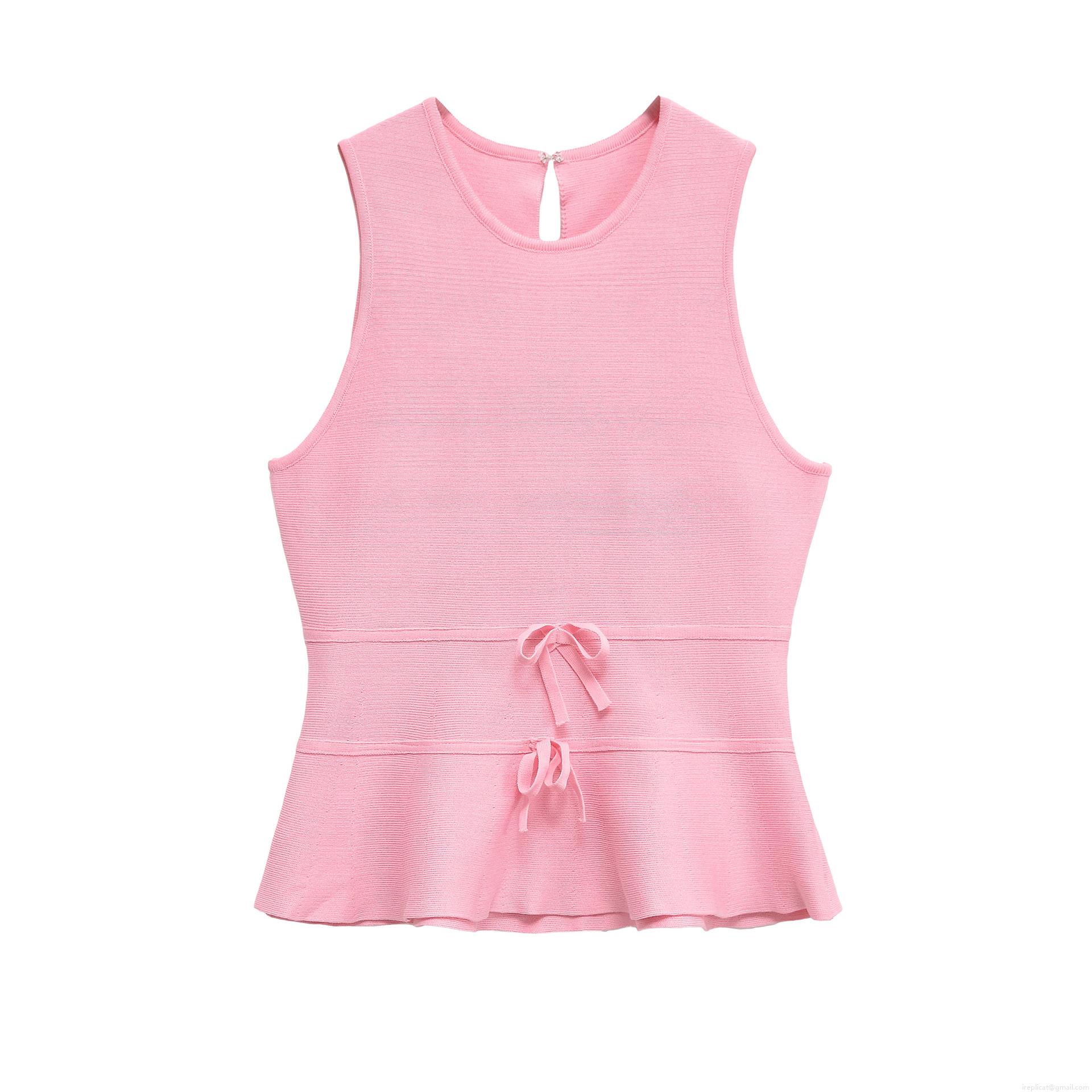 • Women's Sleeveless Peplum Knit Top Polyester Bowknot Ruffle Hem Round Neck Casual Summer Solid Color Loose Fit T-Shirt