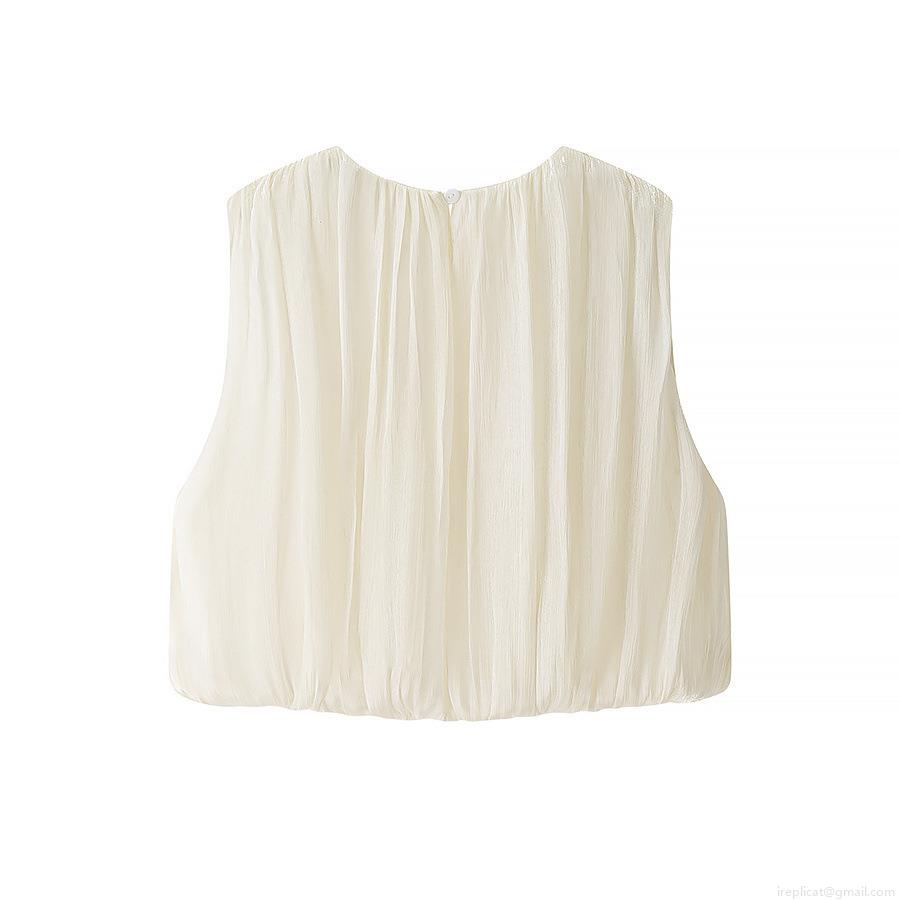 • Women's Sleeveless Pleated Top Fashion Elegant Round Neck Solid Color Loose Bubble Hem Vest Summer Casual Polyester Spandex Shirt
