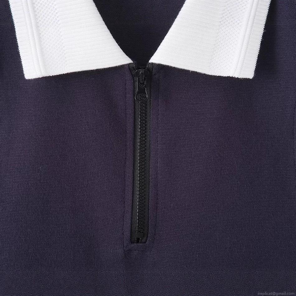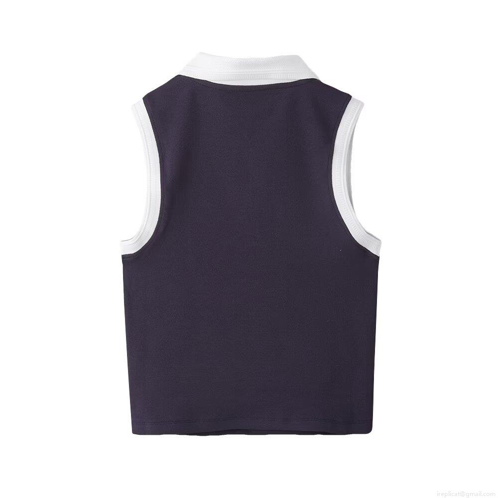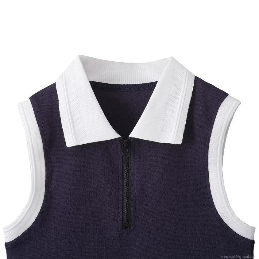 Women's Sleeveless Polyester Knit Polo Tank Top Contrast Trim Half Zipper Street Style Summer Streetwear Slim Fit Vest For Women