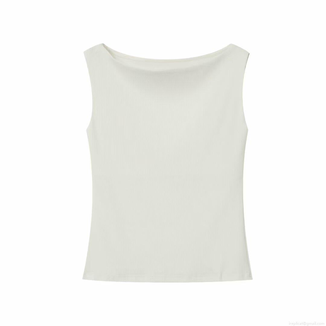 Women's Sleeveless Ribbed Knit Tank Top Summer Solid Color Slim Fit Boat Neck Polyester T-Shirt Basic Streetwear Top For Women