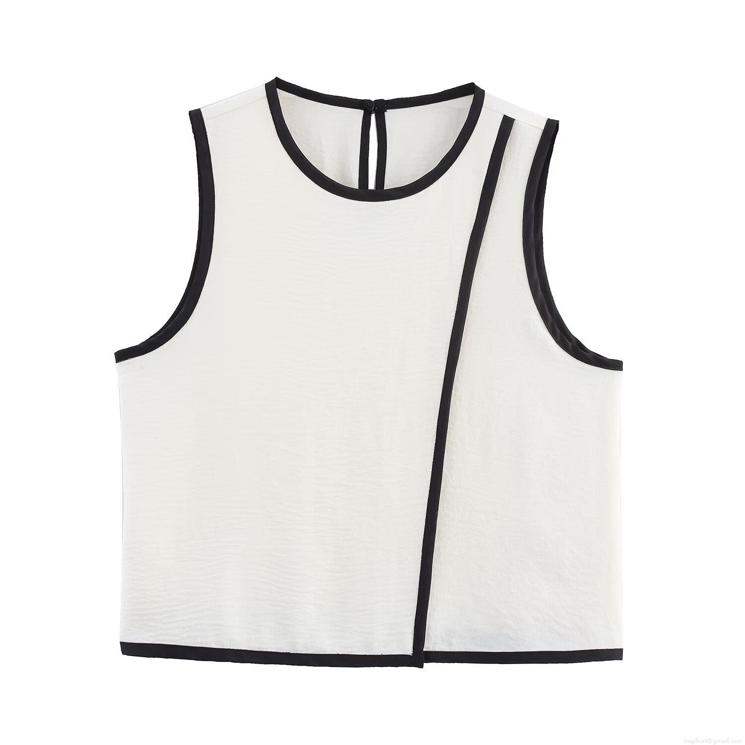Women's Sleeveless Round Neck T-Shirt Contrast Trim Crepe Polyester Pullover Tank Top Summer Casual Streetwear Vest Tops