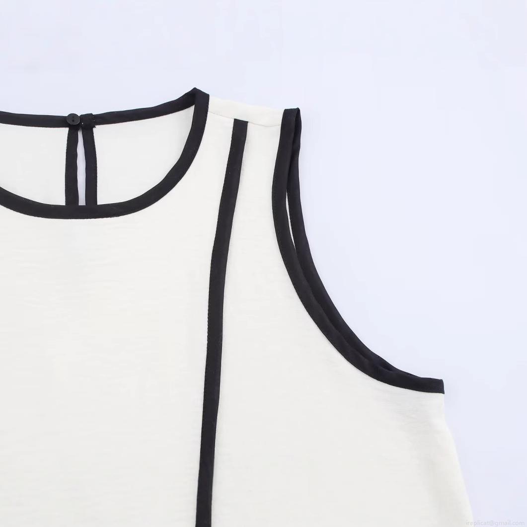 • Women's Sleeveless Round Neck T-Shirt Contrast Trim Crepe Polyester Pullover Tank Top Summer Casual Streetwear Vest Tops