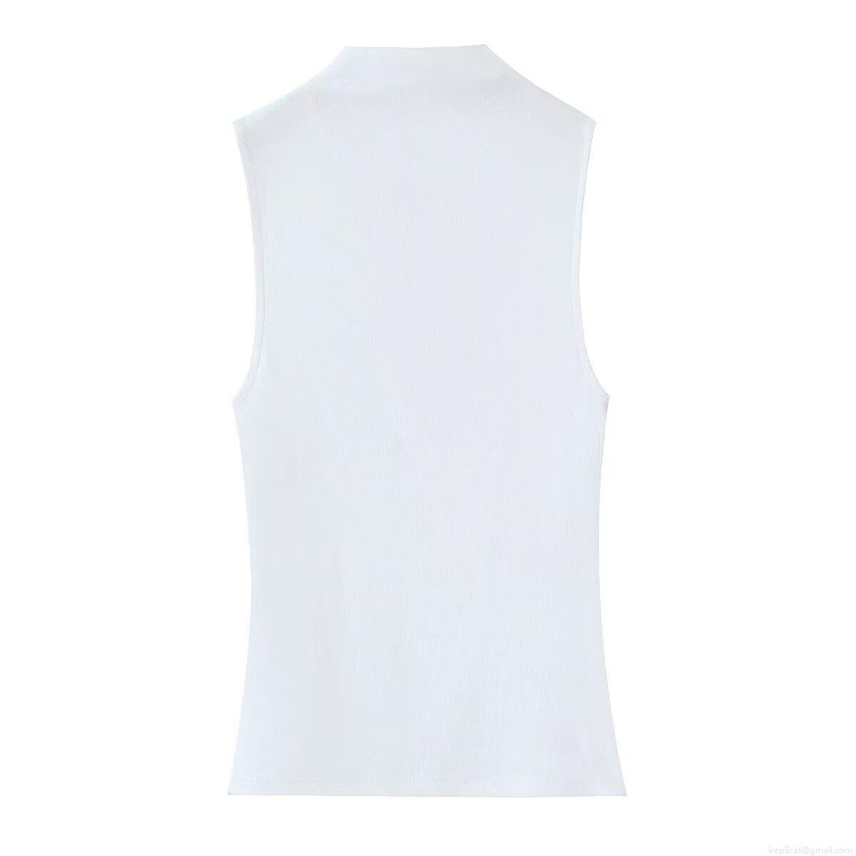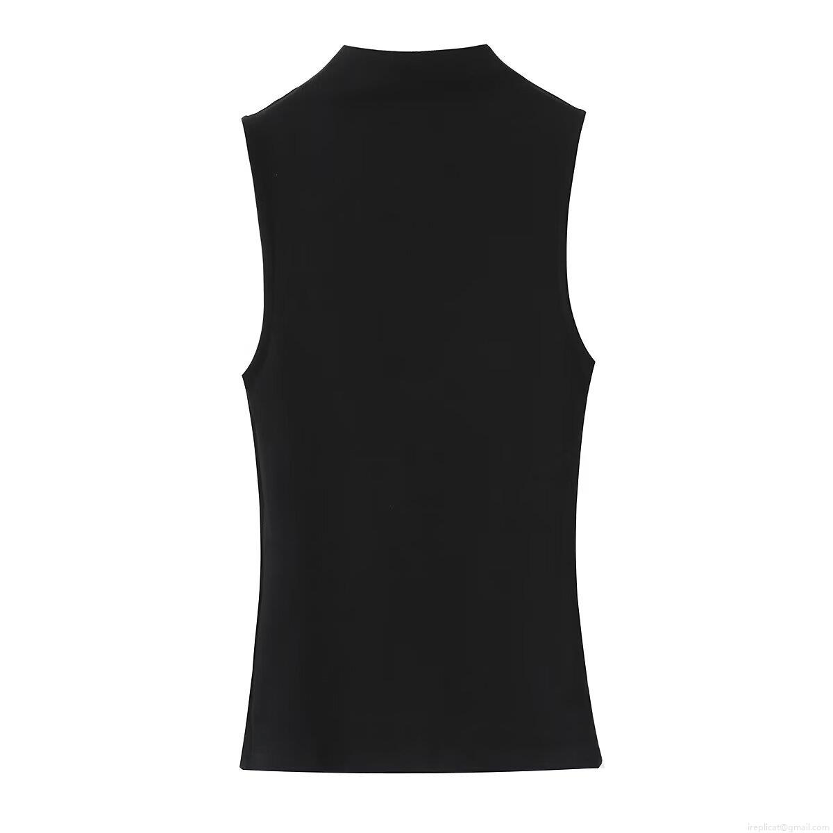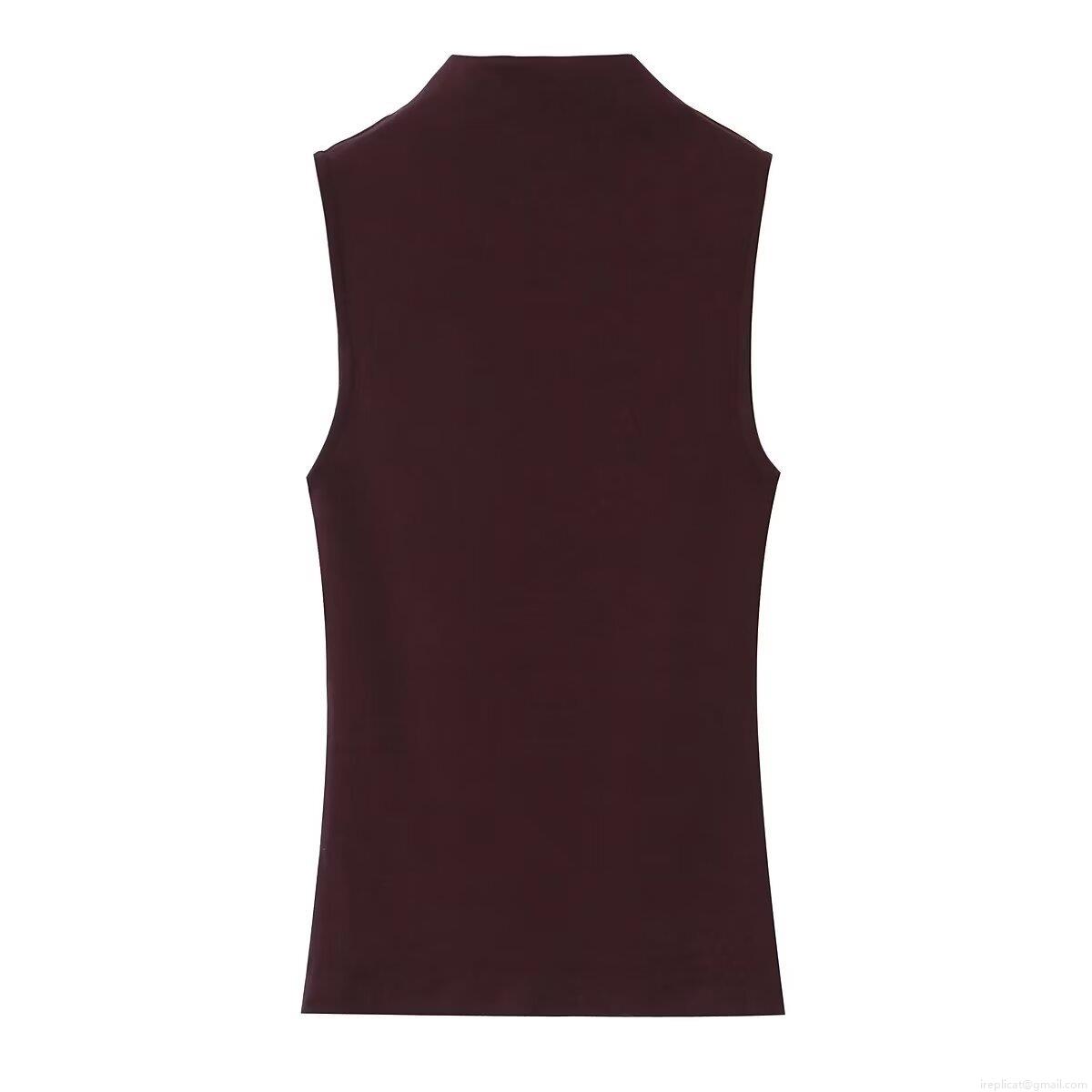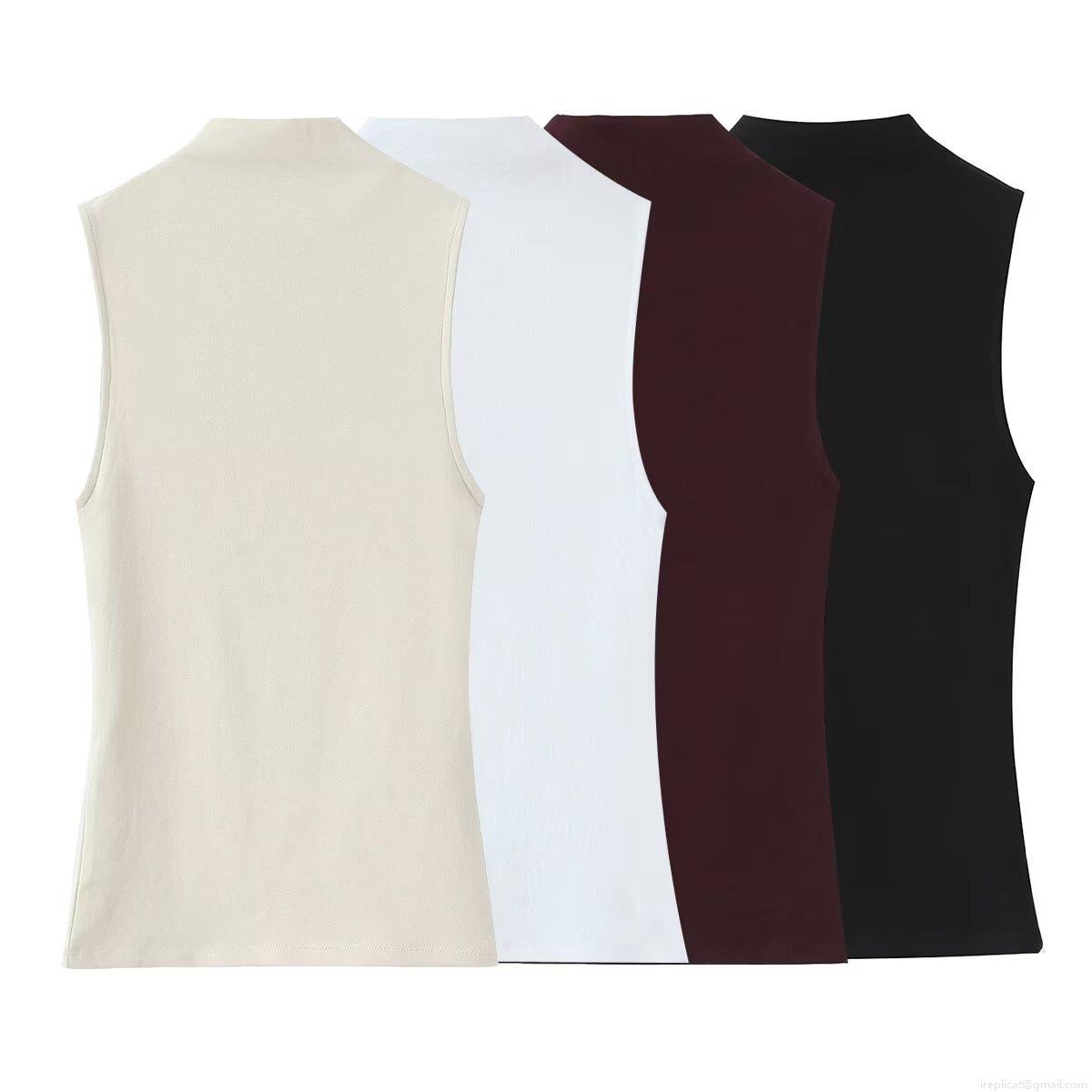• Women's Sleeveless Semi-high Neck Slim Fit T-Shirt Polyester Ribbed Knit Mock Neck Solid Color Casual Streetwear Basic Tank Top Autumn Summer