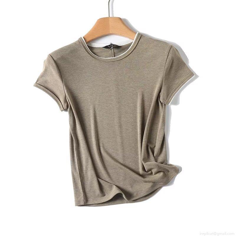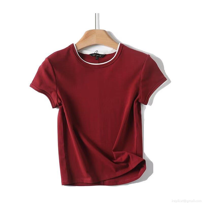 • Women's Slim Fit Cotton Blend Round Neck T-Shirt With Contrast Edging Basic Short Sleeve Summer Casual Street Style Tee