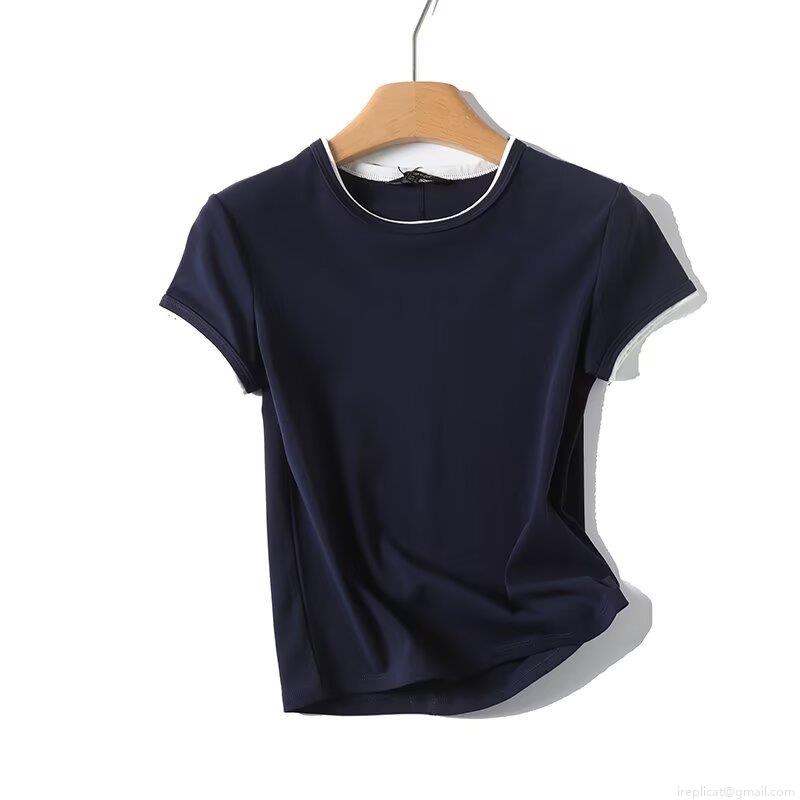 Women's Slim Fit Cotton Blend Round Neck T-Shirt With Contrast Edging Basic Short Sleeve Summer Casual Street Style Tee