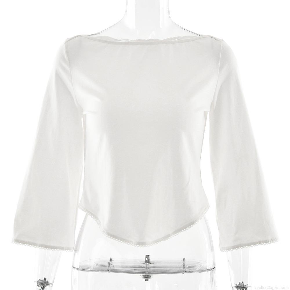 Solid Color, Wood Ear Edge, Wavy Edge, Regular Sleeve, Curved Hem