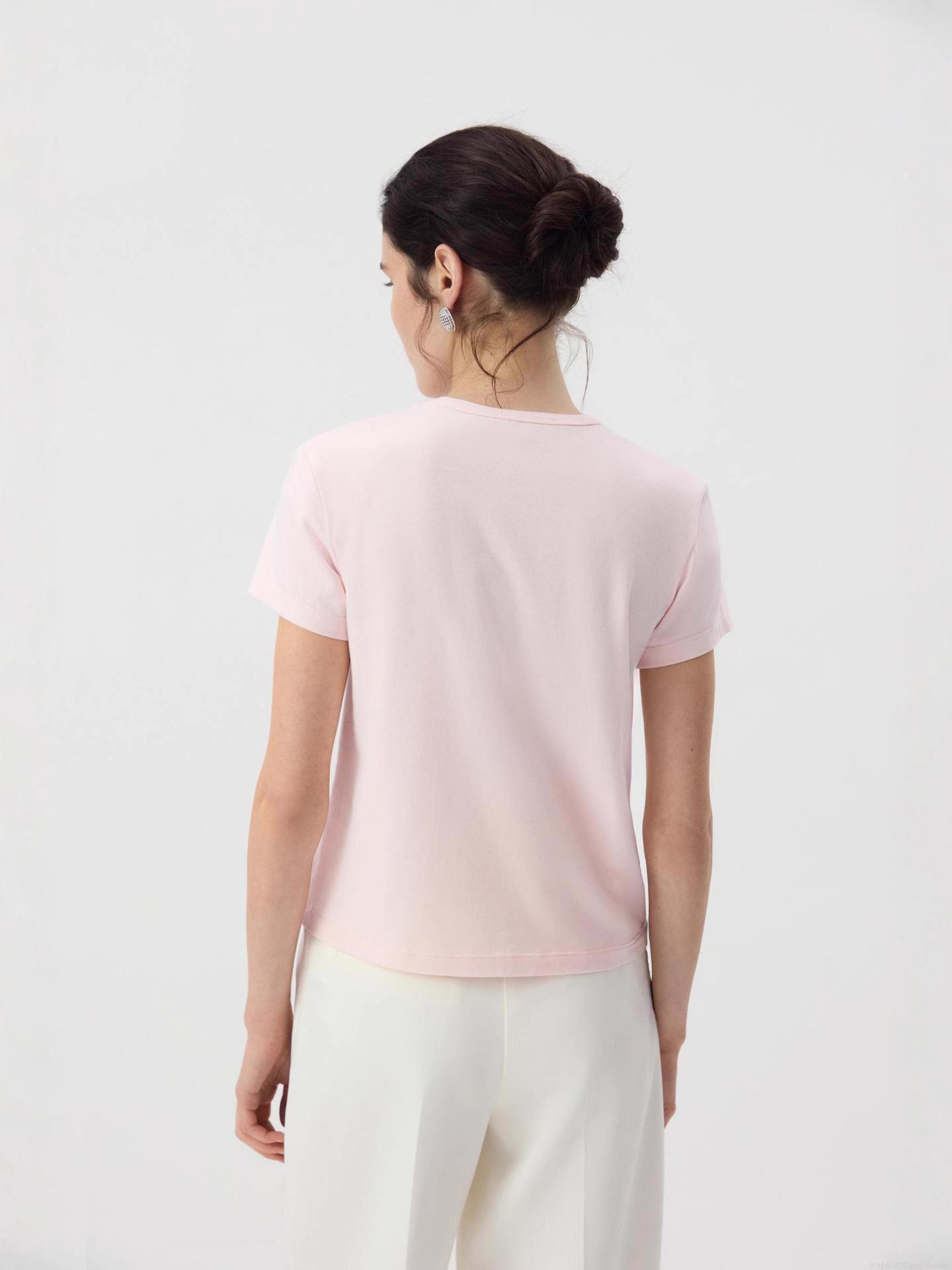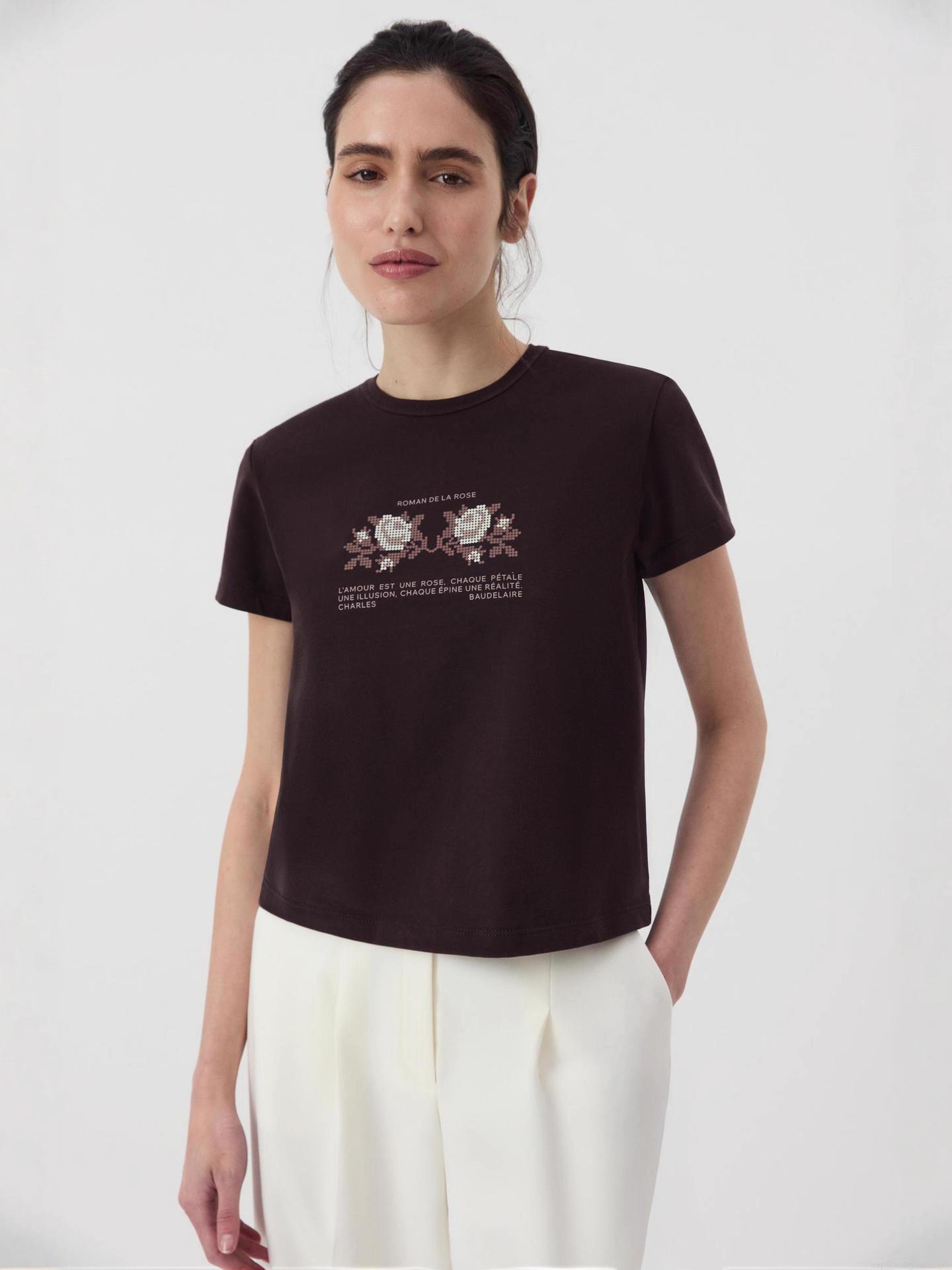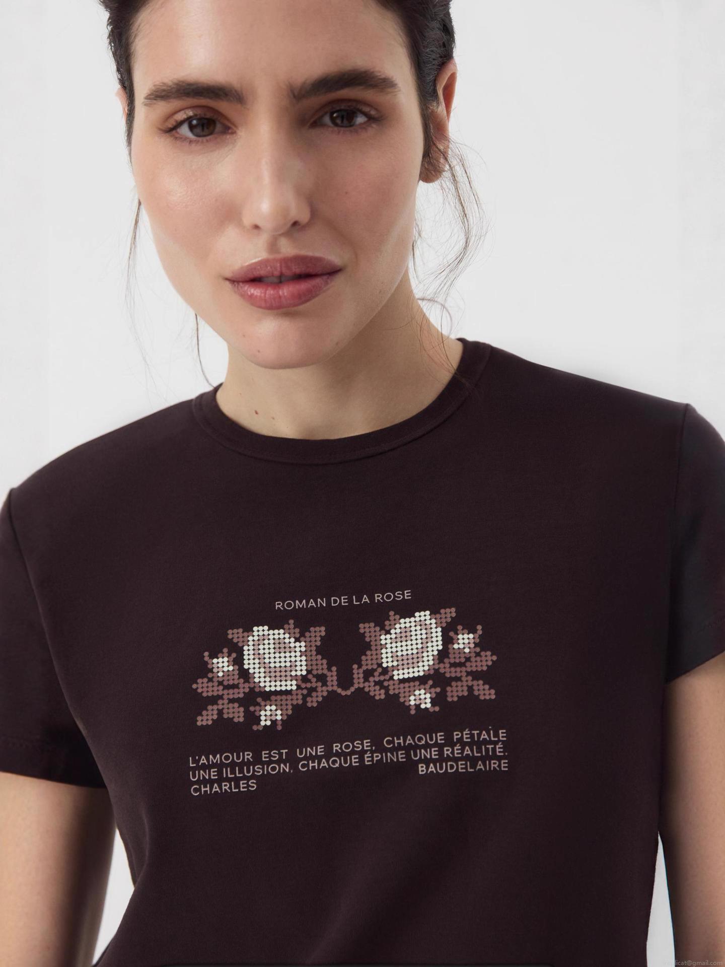 • Women's Slim Fit Cotton T-Shirt Rose Flower Embroidery Letter Print Short Sleeve Casual Round Neck Top For Summer