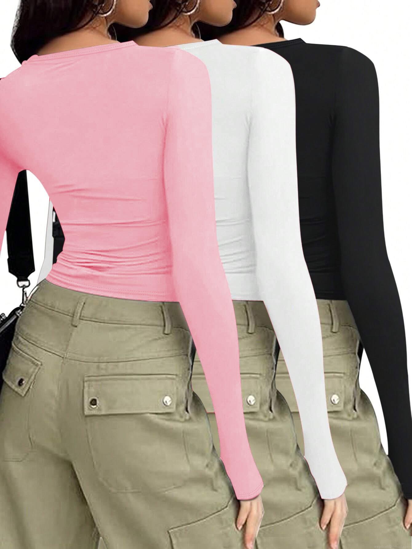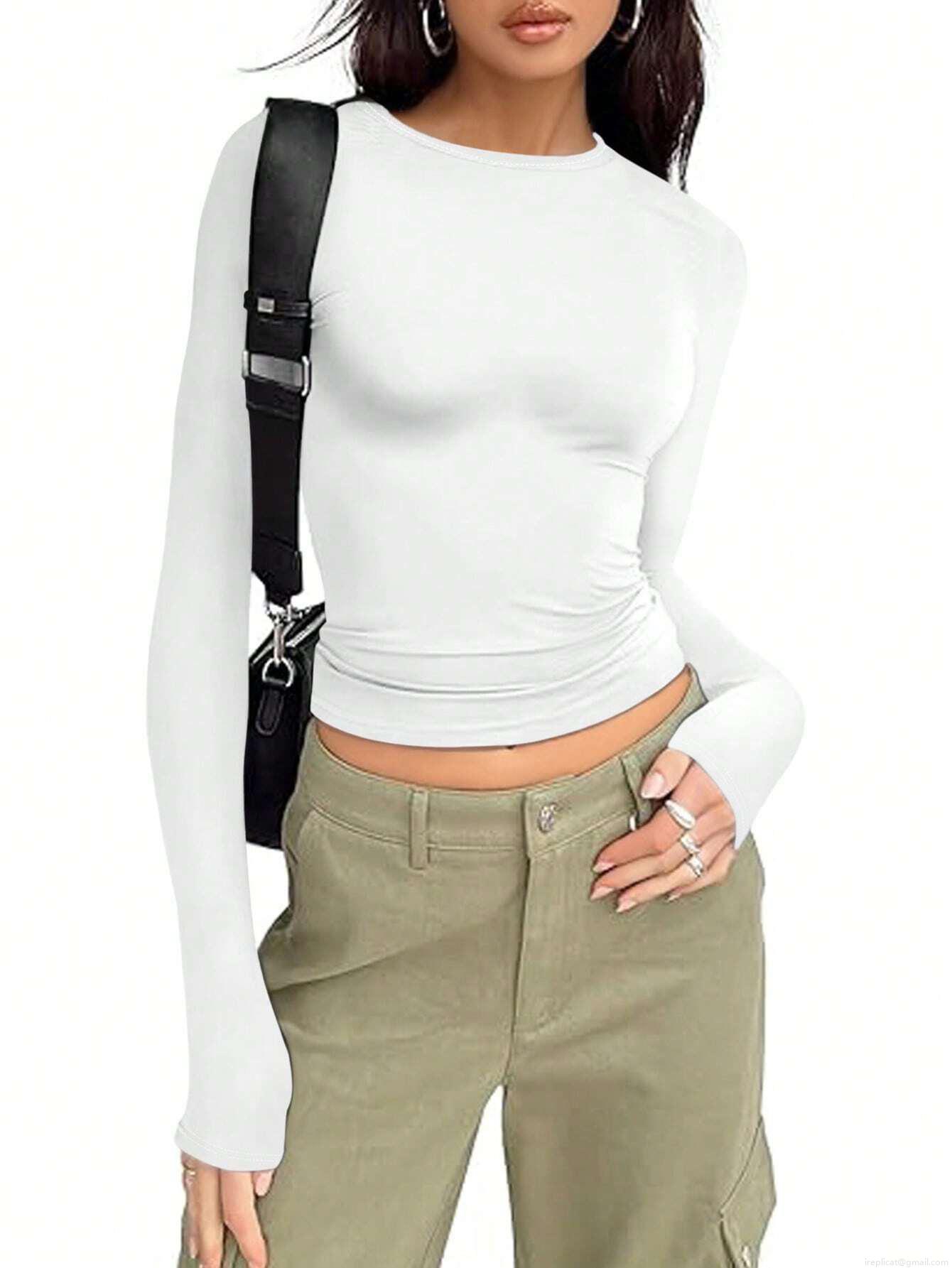 • Women's Slim Fit Long Sleeve Crew Neck T-Shirt Solid Color Basic Pullover Top Polyester Elastane Commute Casual Spring Autumn Winter Bottoming Shirt