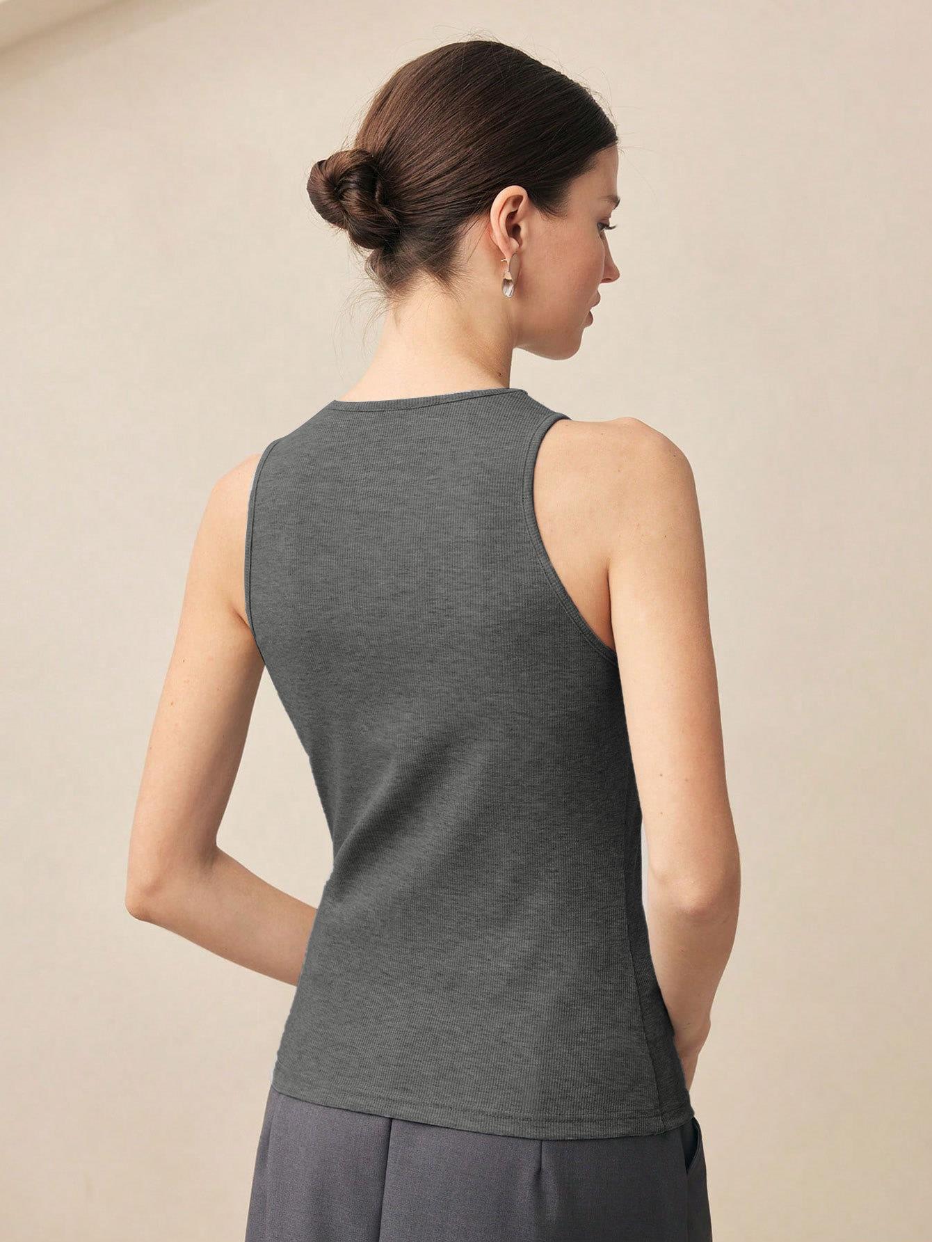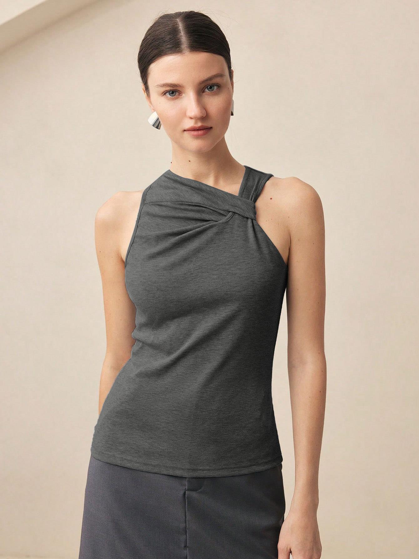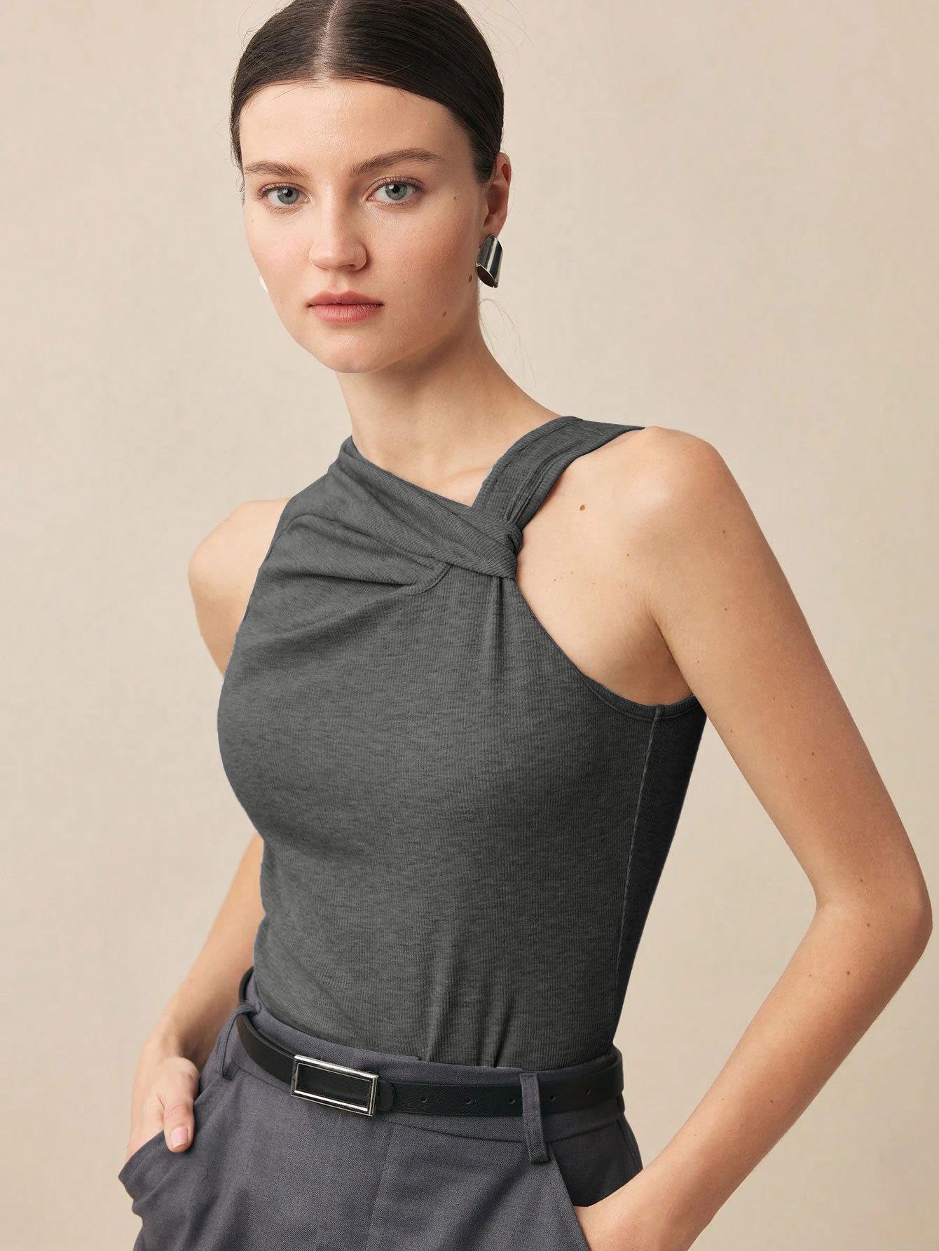 • Women's Slim Fit Ribbed Knit Sleeveless T-Shirt Twisted Asymmetrical Neck Solid Color Summer Tank Top Sexy Intellectual Style Elegant Commute Vest