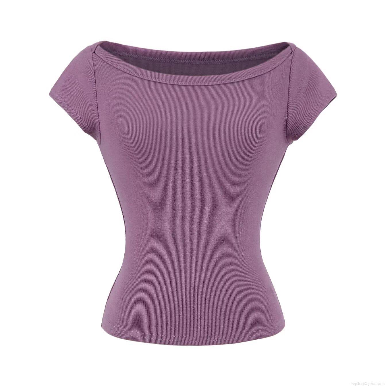 • Women's Slim Fit Ribbed Knit T-Shirt Cotton Viscose Blend Boat Neck Short Sleeve Casual Solid Color Top for Summer