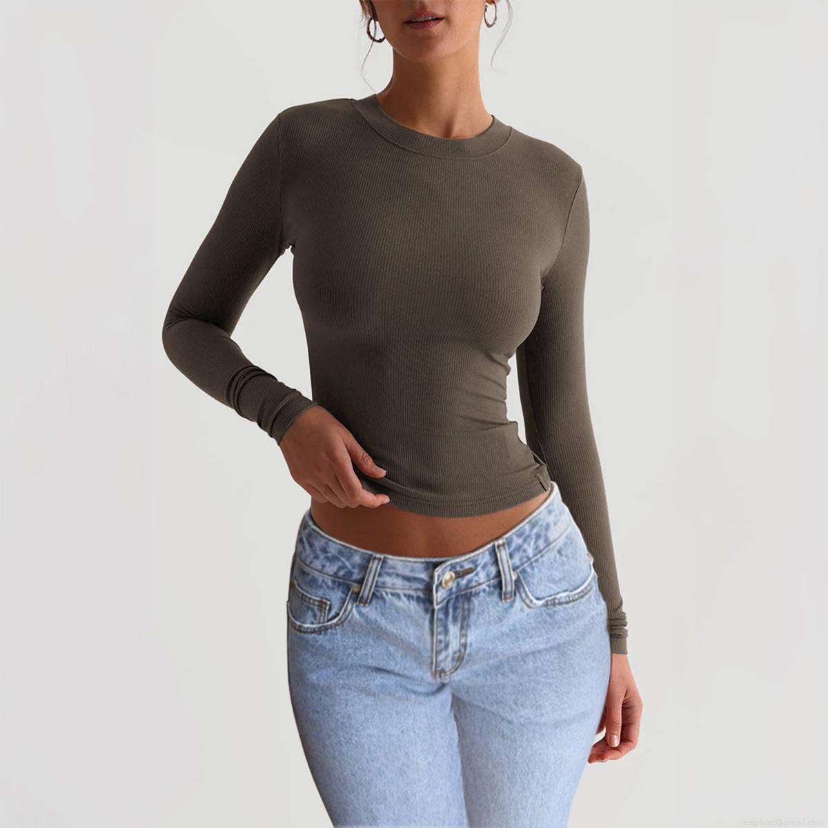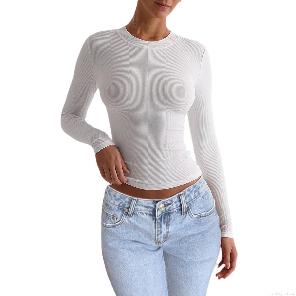 • Women's Slim Fit Ribbed Long Sleeve T-Shirt Viscose Spandex Knit Pullover Top For Casual Daily Elegant Commute Autumn Winter Y2K Style