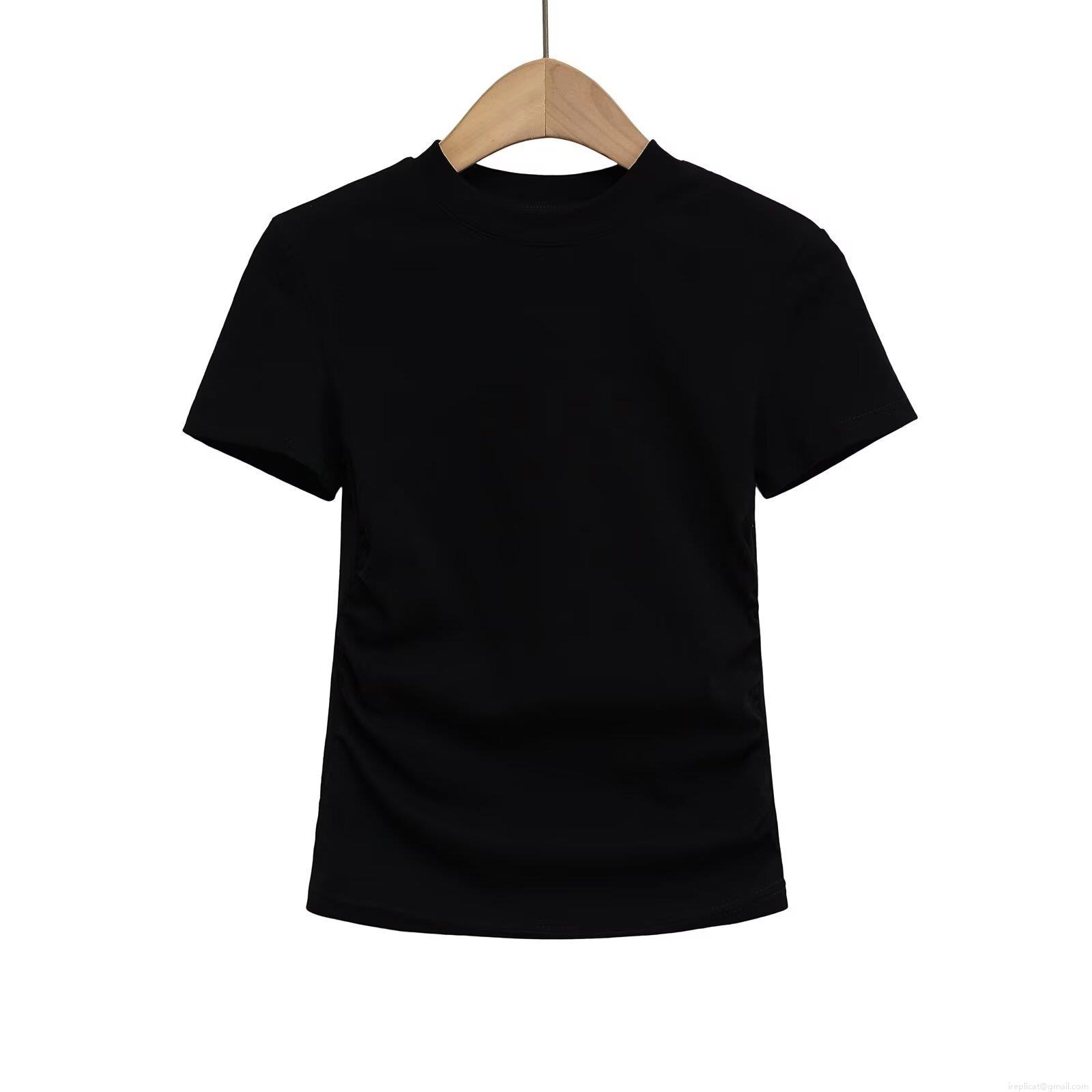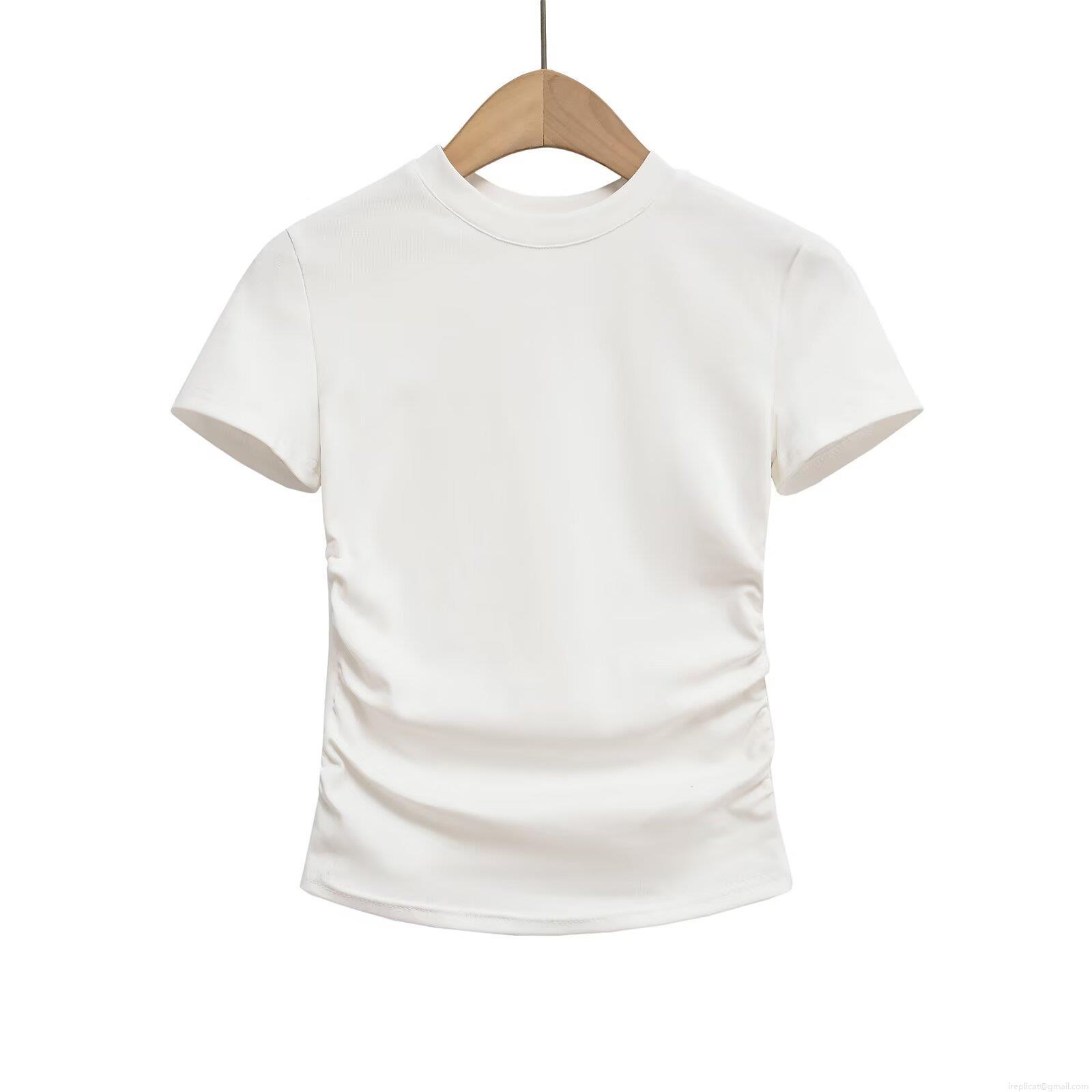 • Women's Slim Fit Short Sleeve T-Shirt Ruched Side Solid Color Round Neck Pullover Top Elastic Polyester Casual Tee Streetwear For Women