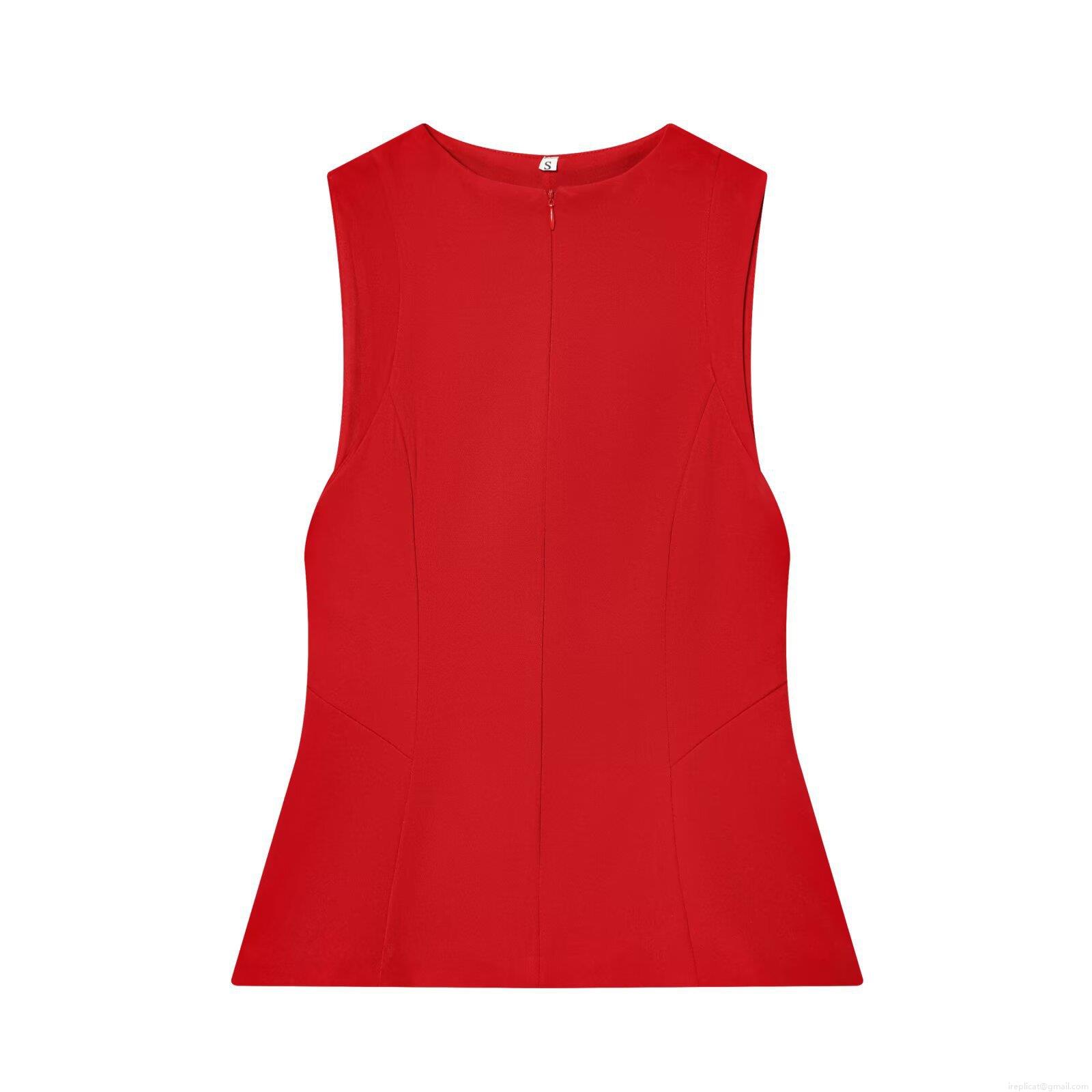 • Women's Slim Fit Sleeveless T-Shirt Round Neck Back Zipper Polyester Top Streetwear Casual Solid Color Blouse for Summer