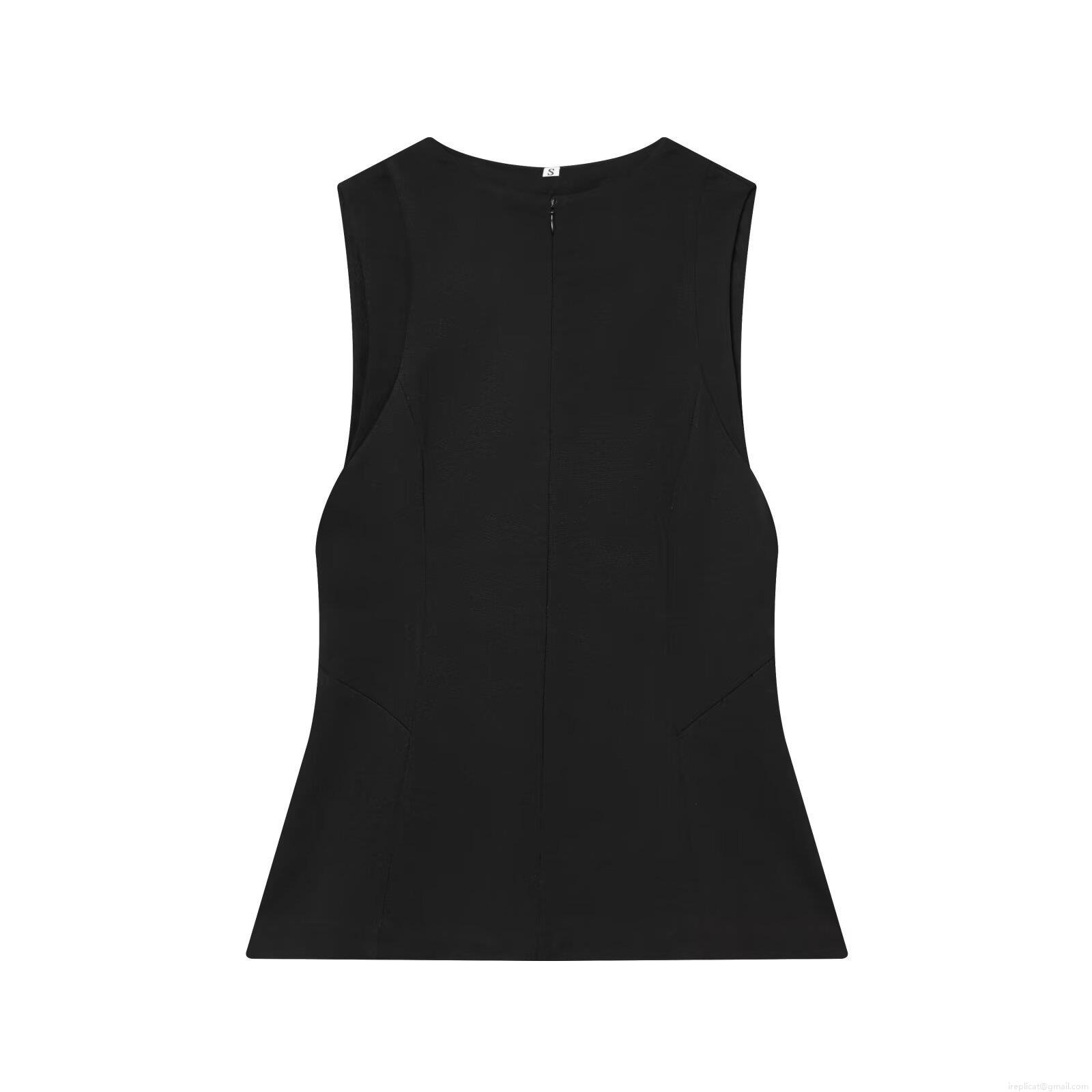 Women's Slim Fit Sleeveless T-Shirt Round Neck Back Zipper Polyester Top Streetwear Casual Solid Color Blouse for Summer