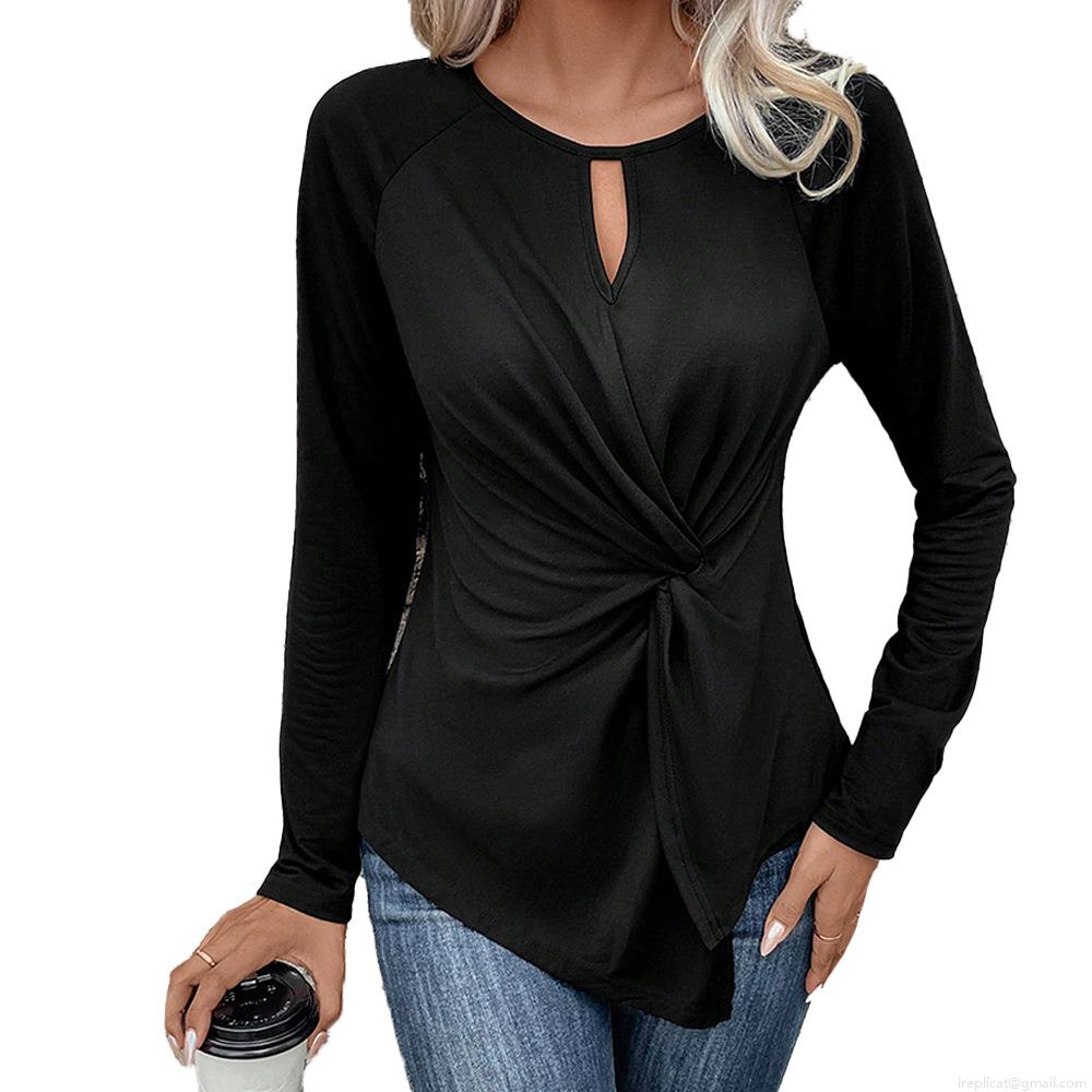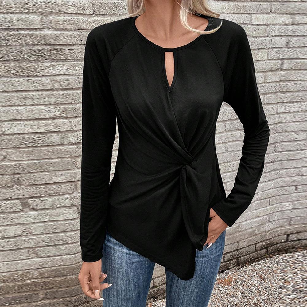 • Women's Slim Fit T-Shirt Viscose Elastane Knotted Front Hollow Keyhole Neck Long Sleeve Pullover Elegant Casual Base Layer Top For Women