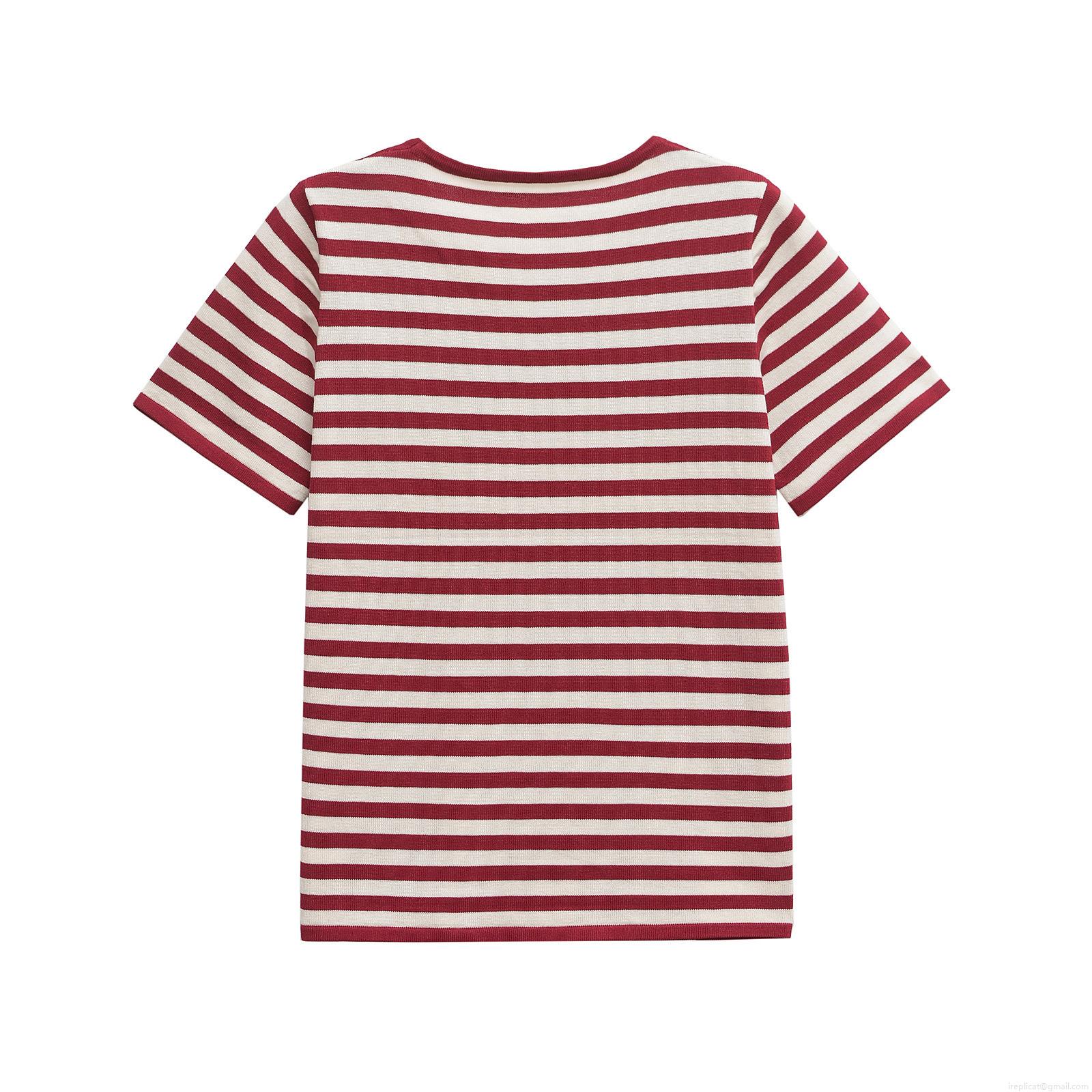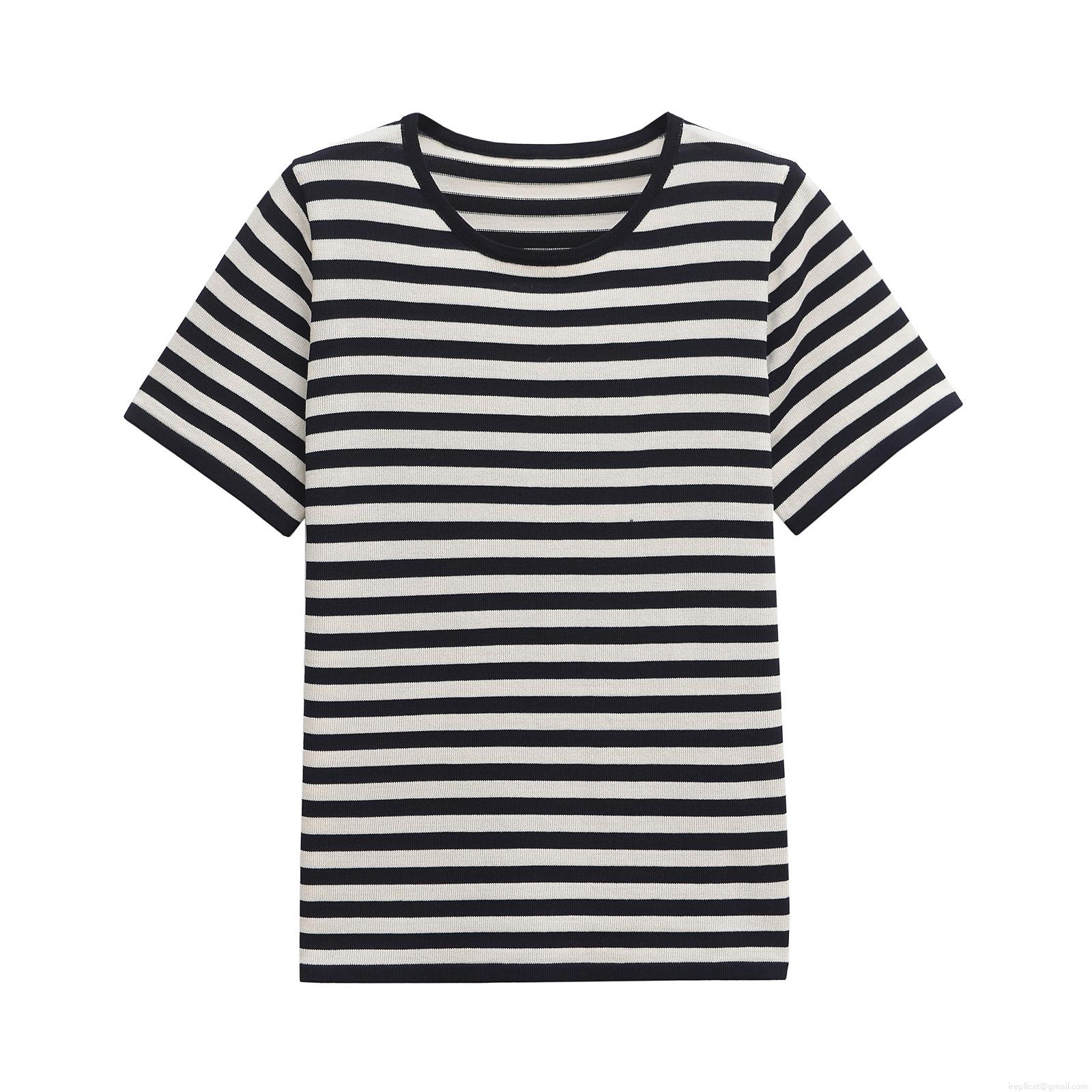 Women's Stripe Round Neck Short Sleeve T-Shirt Slim Fit Polyester Knit Colorblock Casual Summer Top Women Streetwear Clothing