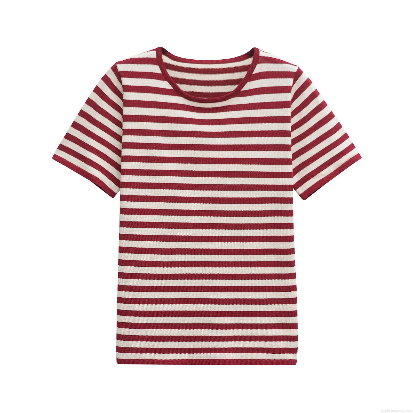 • Women's Stripe Round Neck Short Sleeve T-Shirt Slim Fit Polyester Knit Colorblock Casual Summer Top Women Streetwear Clothing