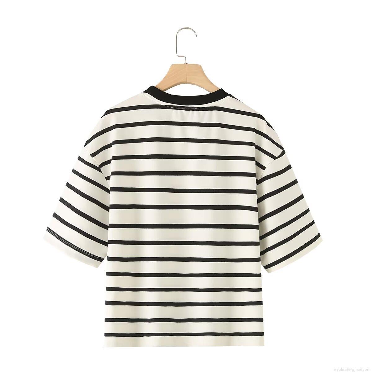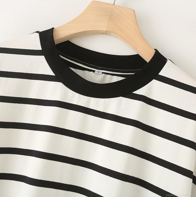 • Women's Striped Cotton Short Sleeve T-Shirt Casual Loose Fit Round Neck Pullover With Slit Hem Breathable Summer Top For Daily Wear Fashion Tee
