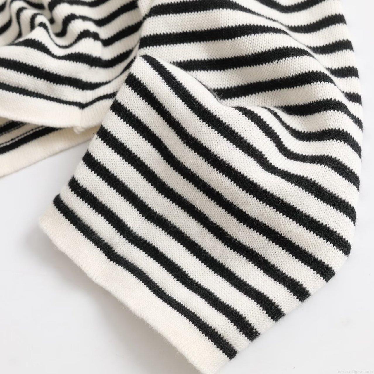 Women's Striped Knit Long Sleeve T-Shirt With Scarf 100% Cotton Casual Loose Fitting Top For Daily Wear Minimalist Style Autumn Fashion