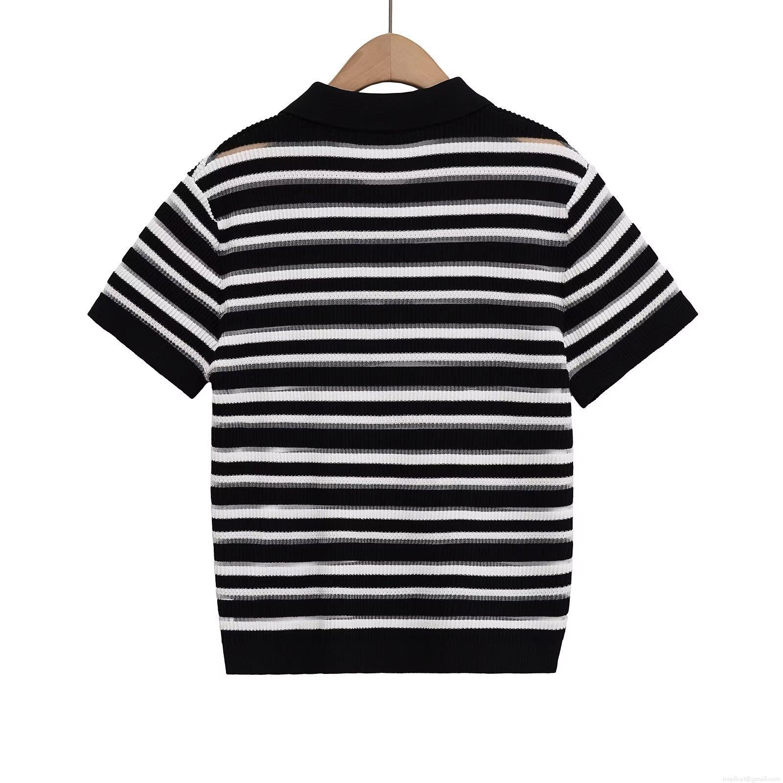 Horizontal Stripes, Buttons, Knitted Ribbed, Polo Collar