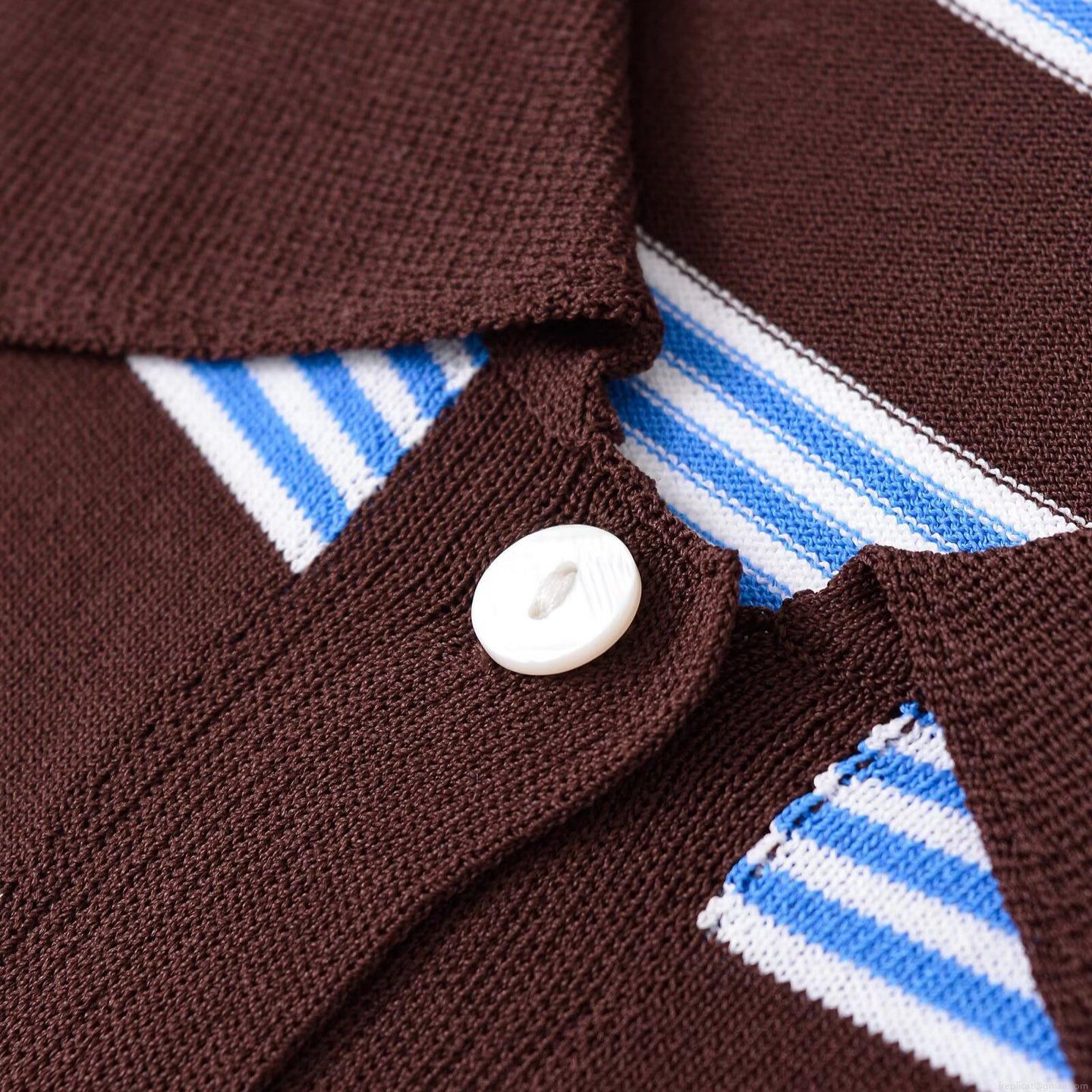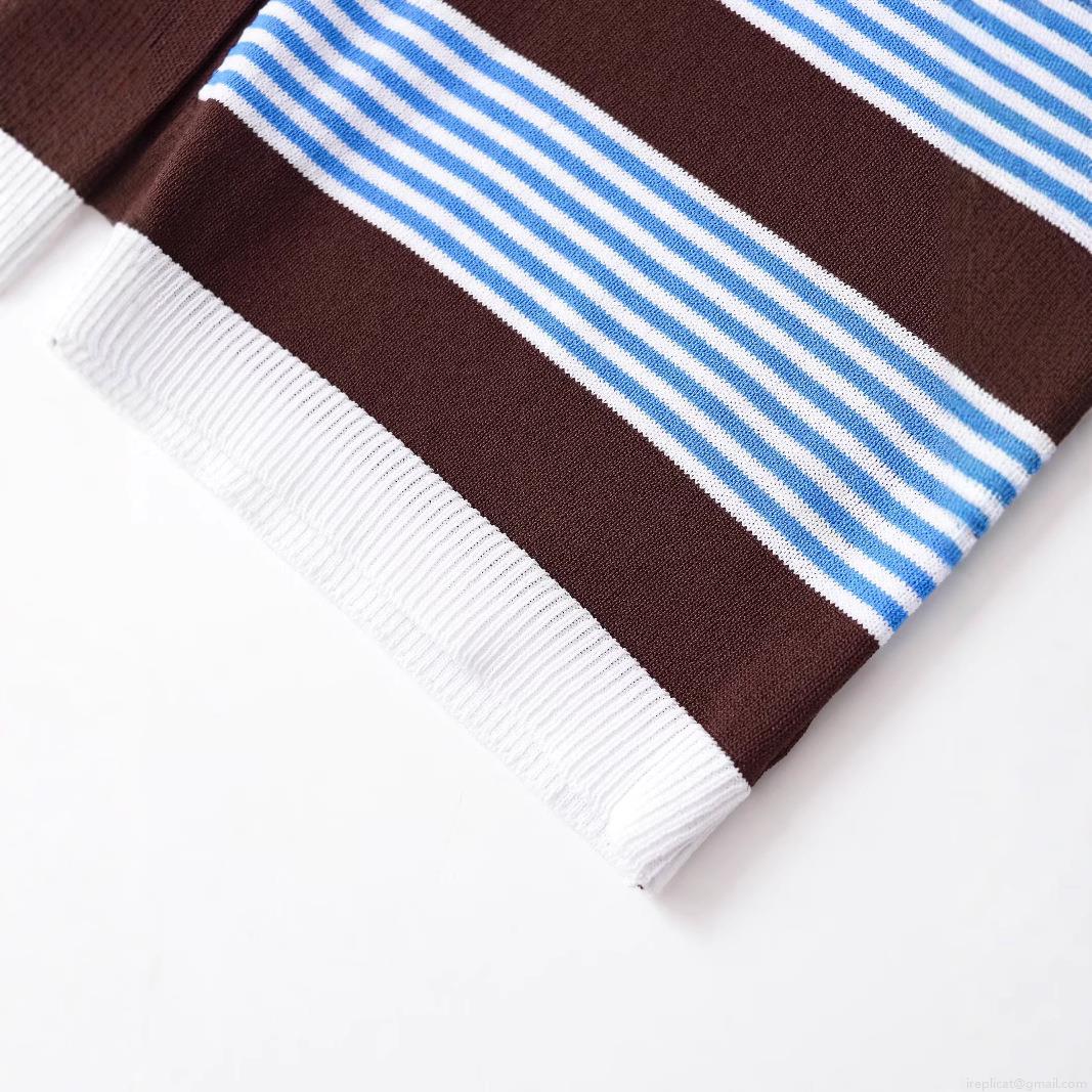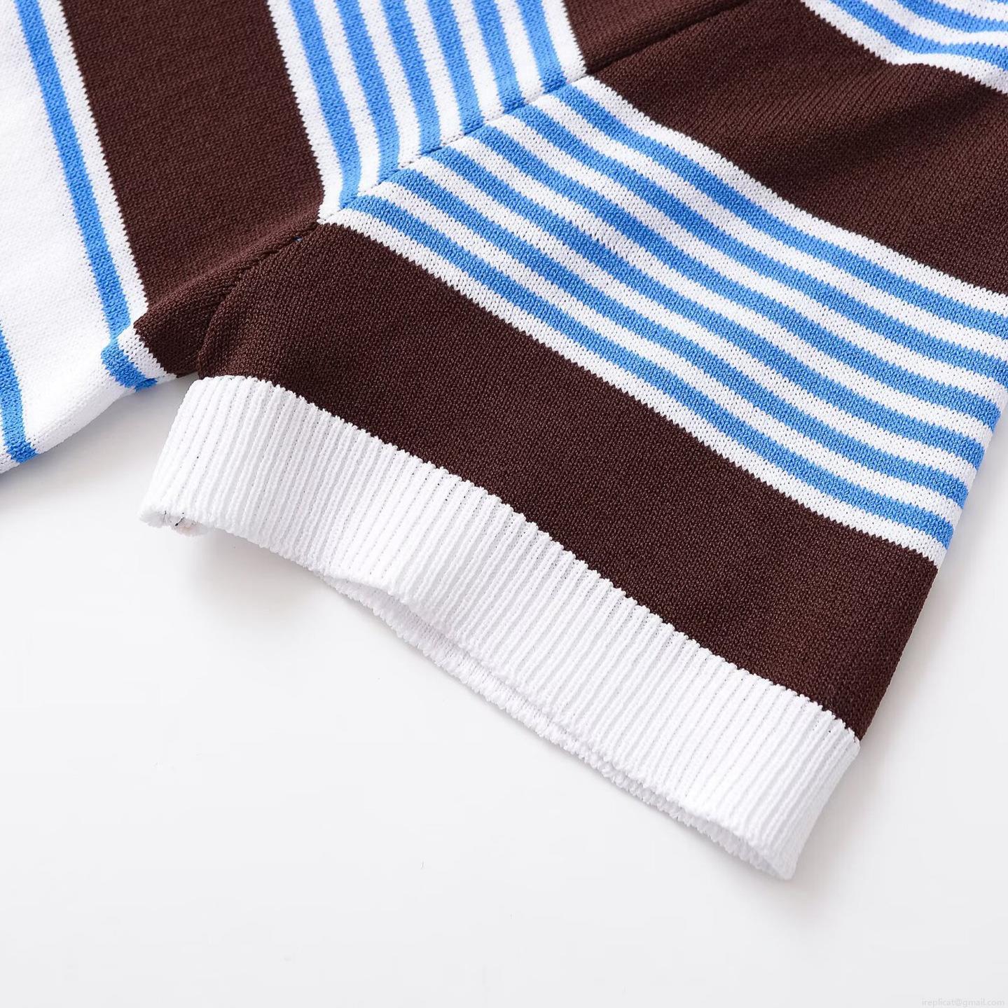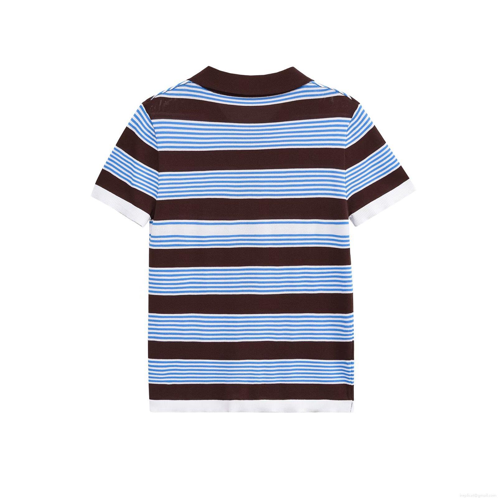 Women's Striped Knitted Polo T-Shirt Mercerized Cotton Short Sleeve Button Up Casual Minimalist Top For Summer Daily Wear Breathable Ladies Retro Knit Tee