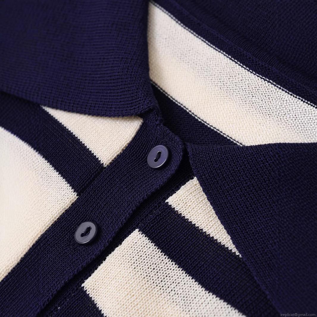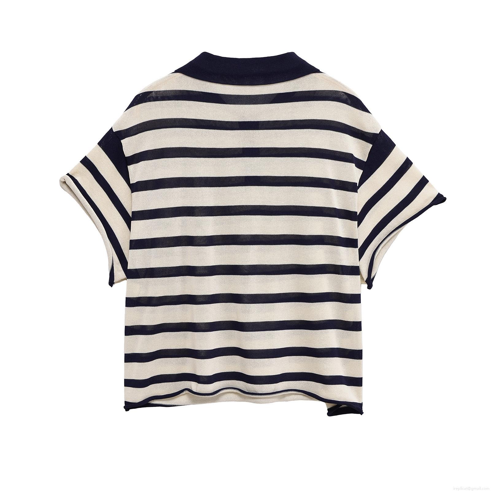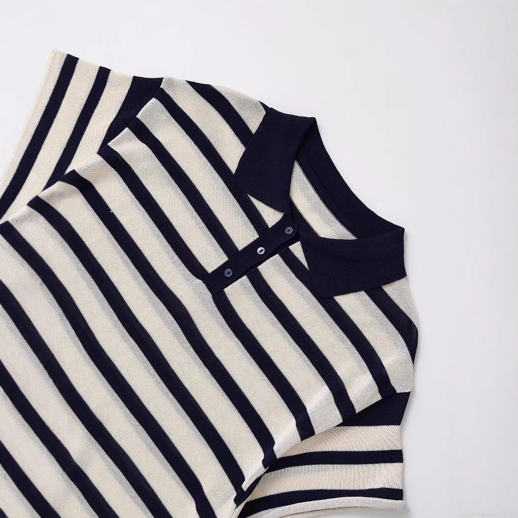 Women's Striped Knitted Polo T-Shirt Short Sleeve Lapel Button Down Loose Fit Summer Casual Streetwear Acetate Fiber Knit Top