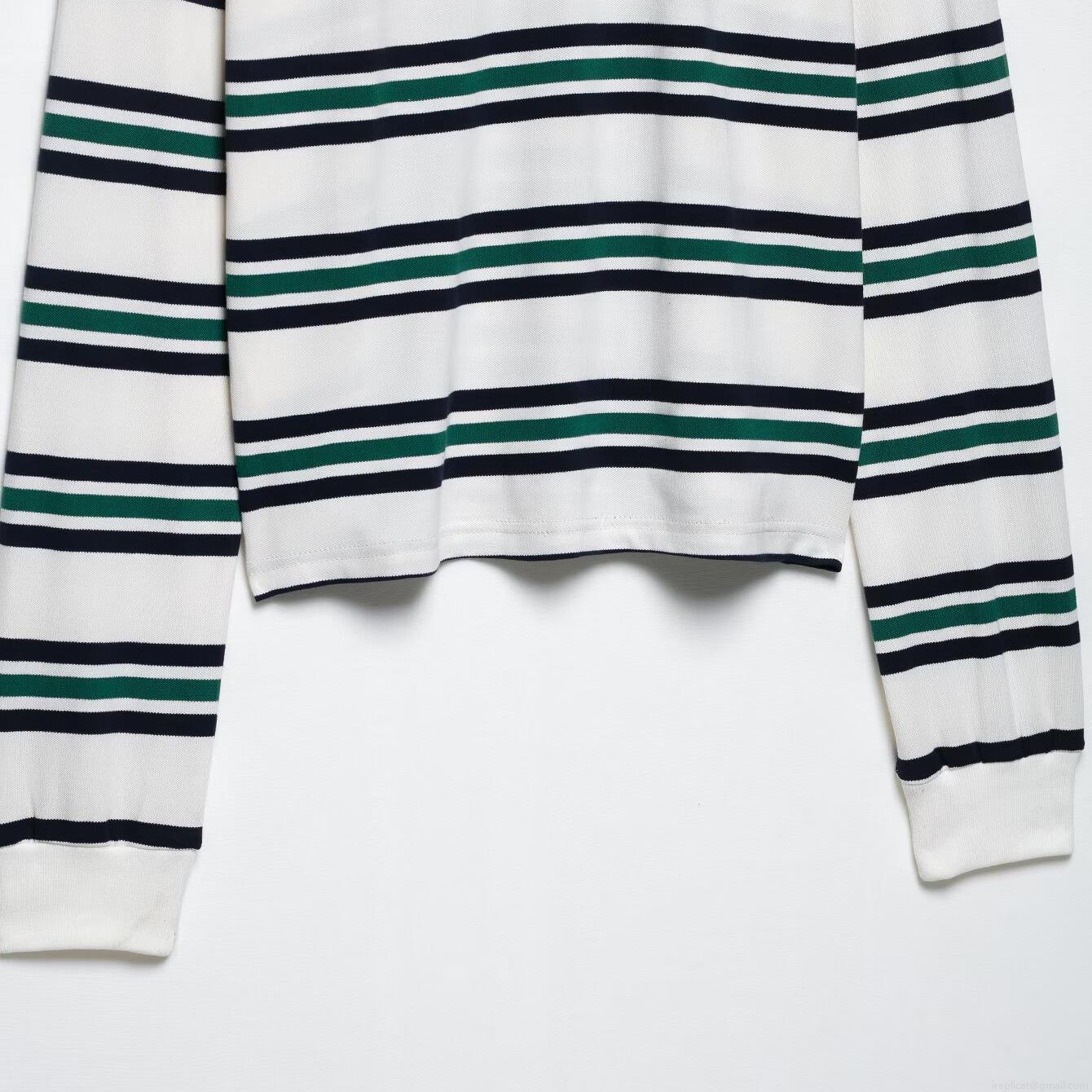 • Women's Striped Long Sleeve Polo Shirt Contrast Color Knit Top Preppy Style Casual Pullover For Spring Autumn Ladies Clothing