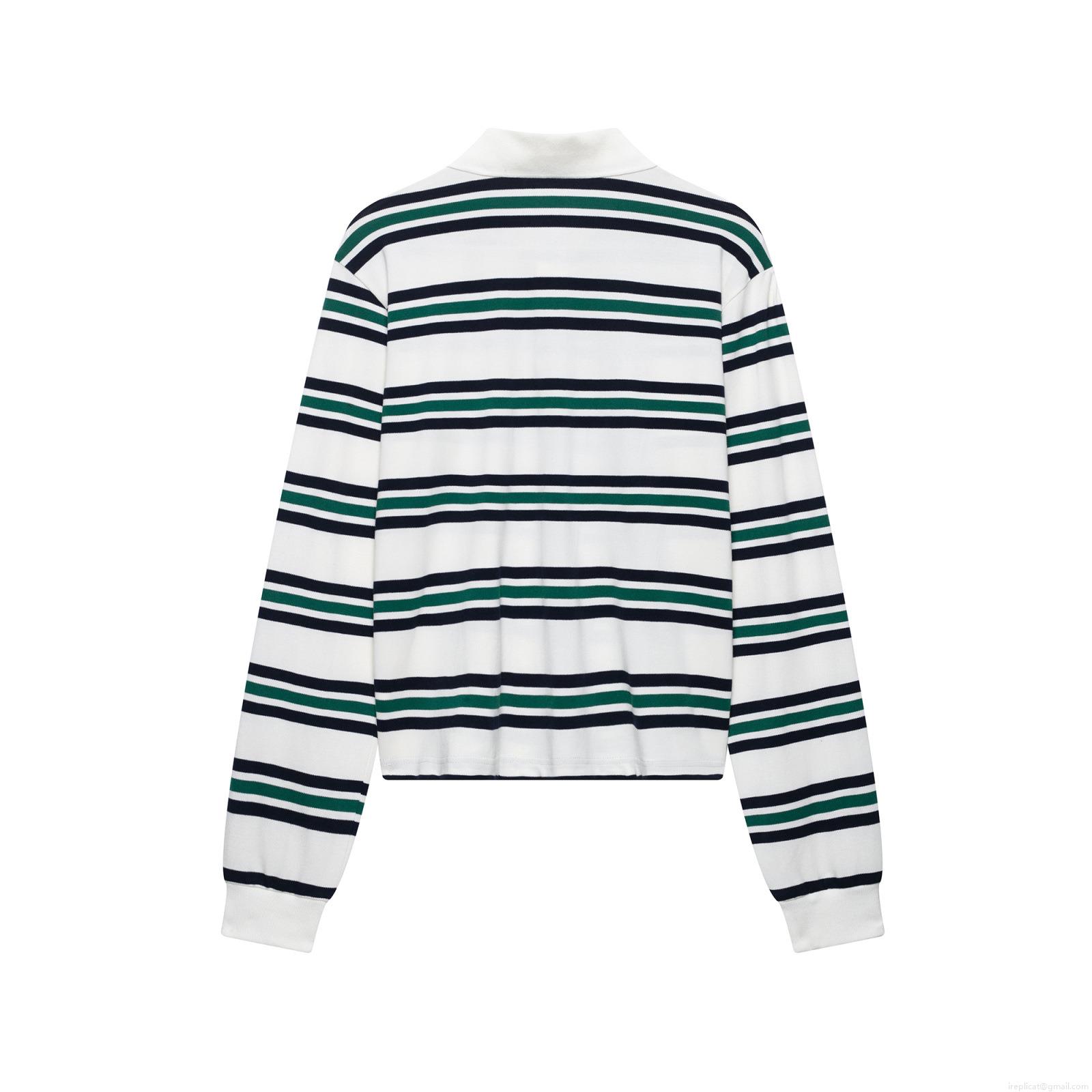Women's Striped Long Sleeve Polo Shirt Contrast Color Knit Top Preppy Style Casual Pullover For Spring Autumn Ladies Clothing