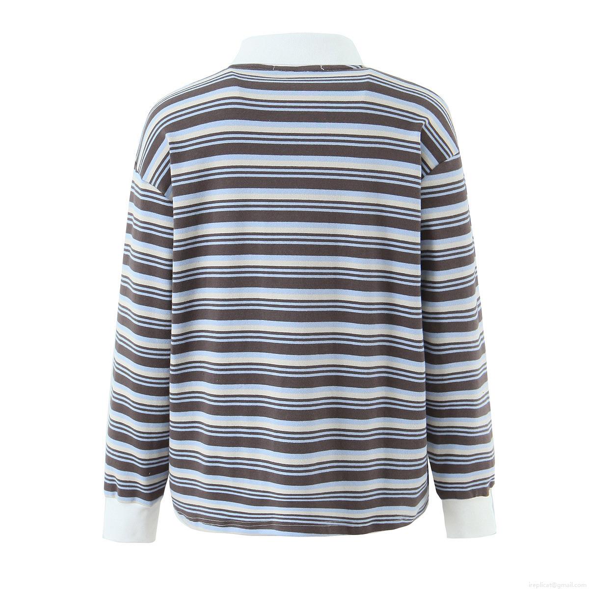 • Women's Striped Long Sleeve Polo Shirt Cotton Blend Breathable Contrast Color Lapel Top Casual Streetwear Autumn Fashion Trendy Jifan Style Tee