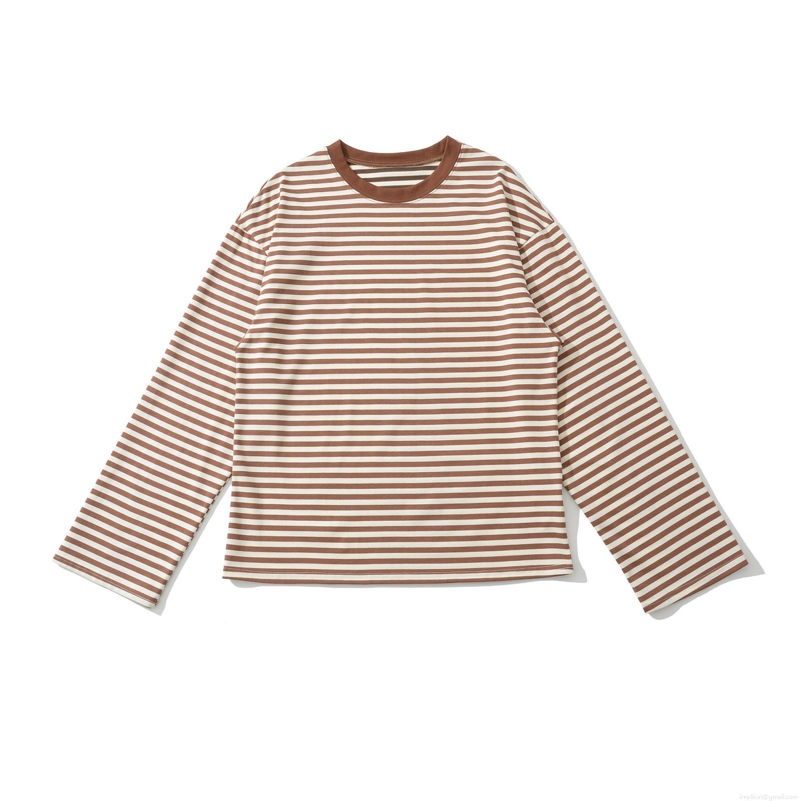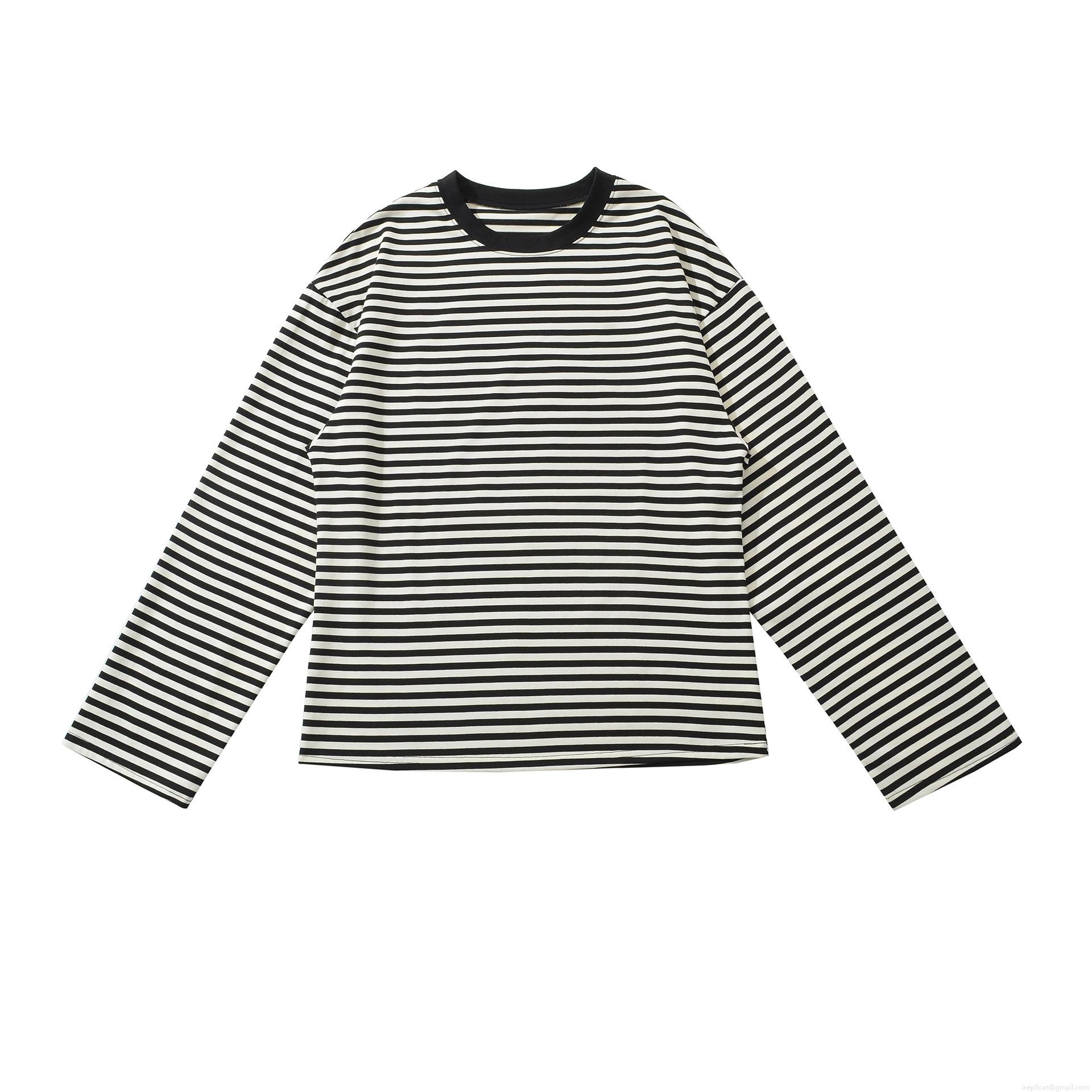 • Women's Striped Long Sleeve T-Shirt Contrast Color Round Neck Cotton Blend Pullover Casual Street Style Tops For Fall Autumn