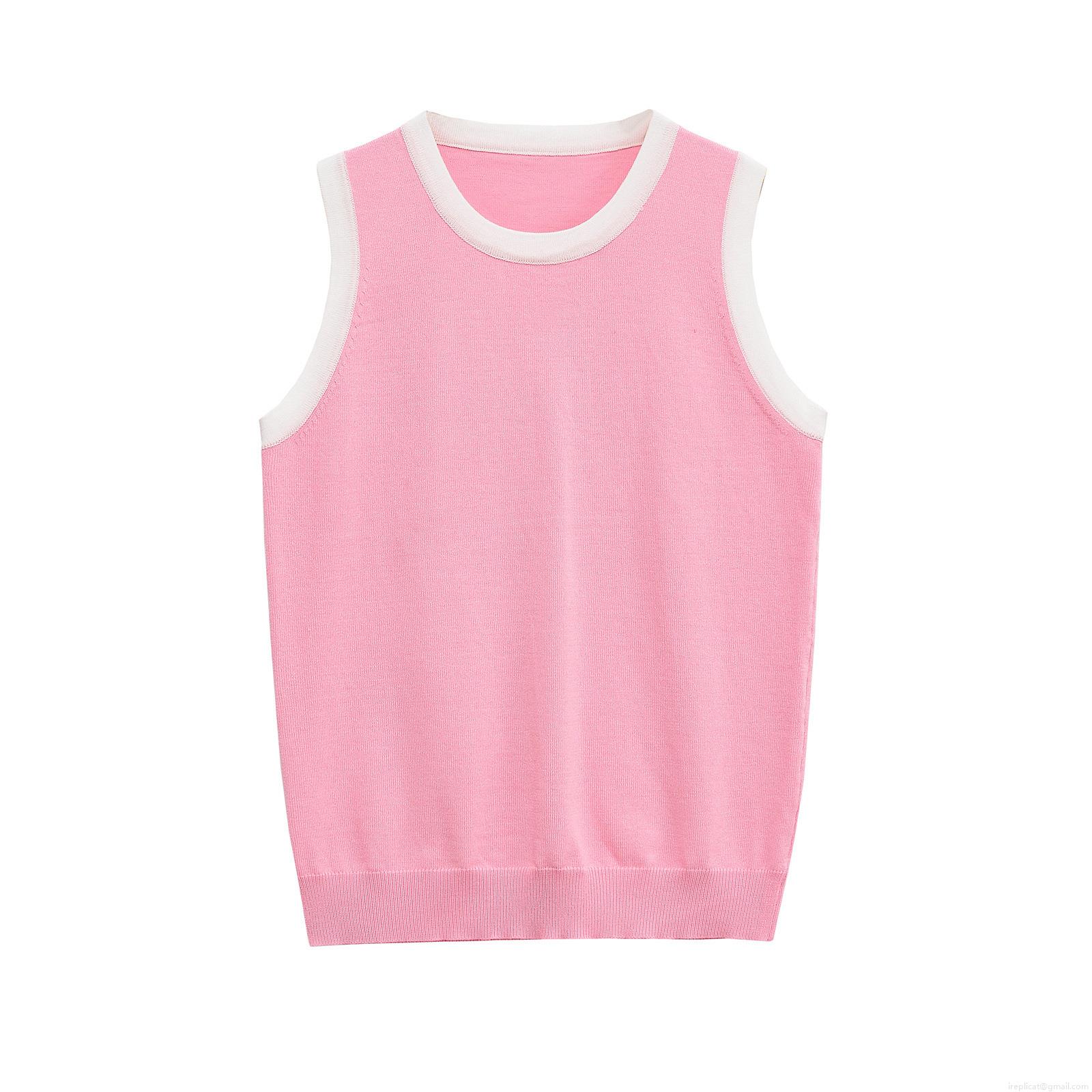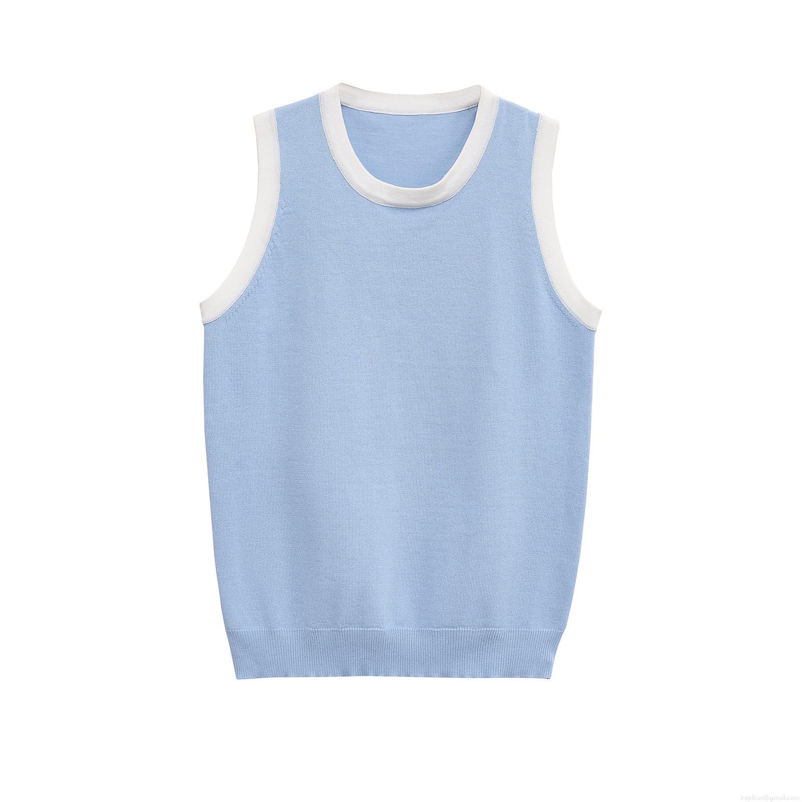 Women's Striped Mercerized Cotton Knit Tank Top Contrast Trim Round Neck Sleeveless Summer Casual Streetwear Chic Ladies Lightweight Comfortable Vest