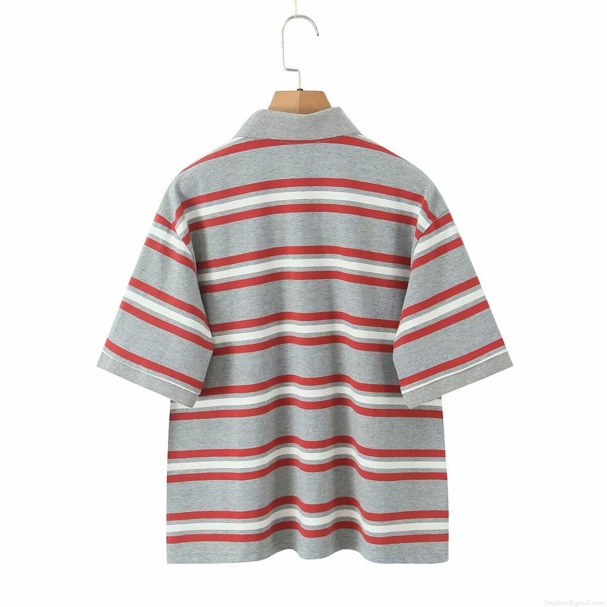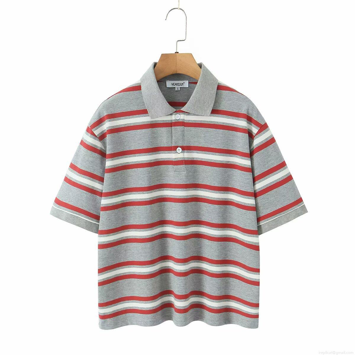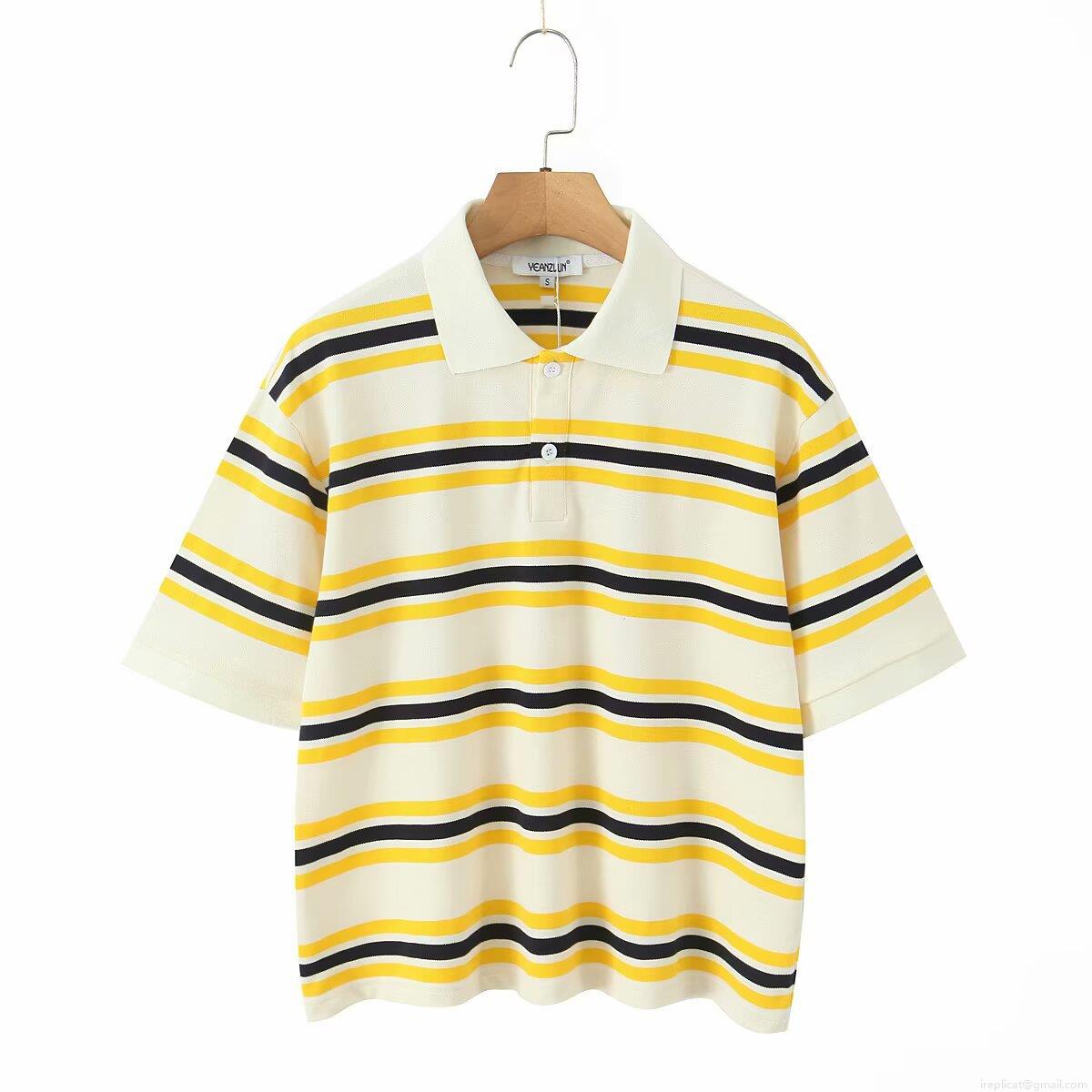 Women's Striped Polo Shirt Short Sleeve Casual Knitted Pullover T-Shirt Splicing Streetwear Summer Autumn Fashion Tops