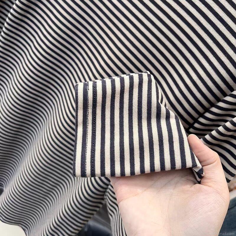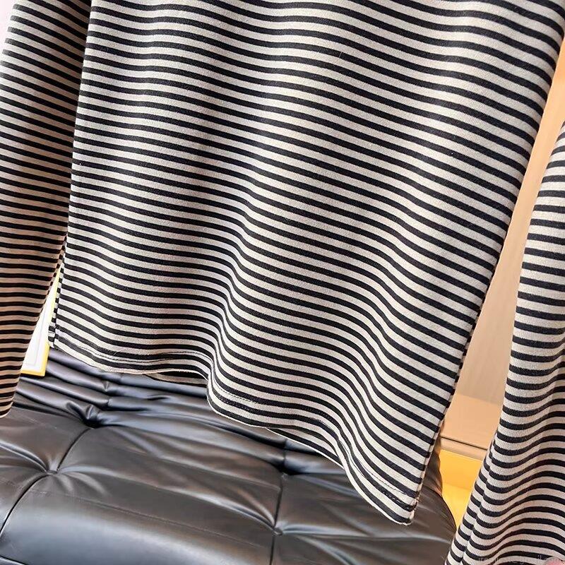 • Women's Striped T-Shirt Cotton Spandex Blend Long Sleeve Round Neck Slim Fit Knitted Casual Base Layer Top for Daily Wear Autumn Winter