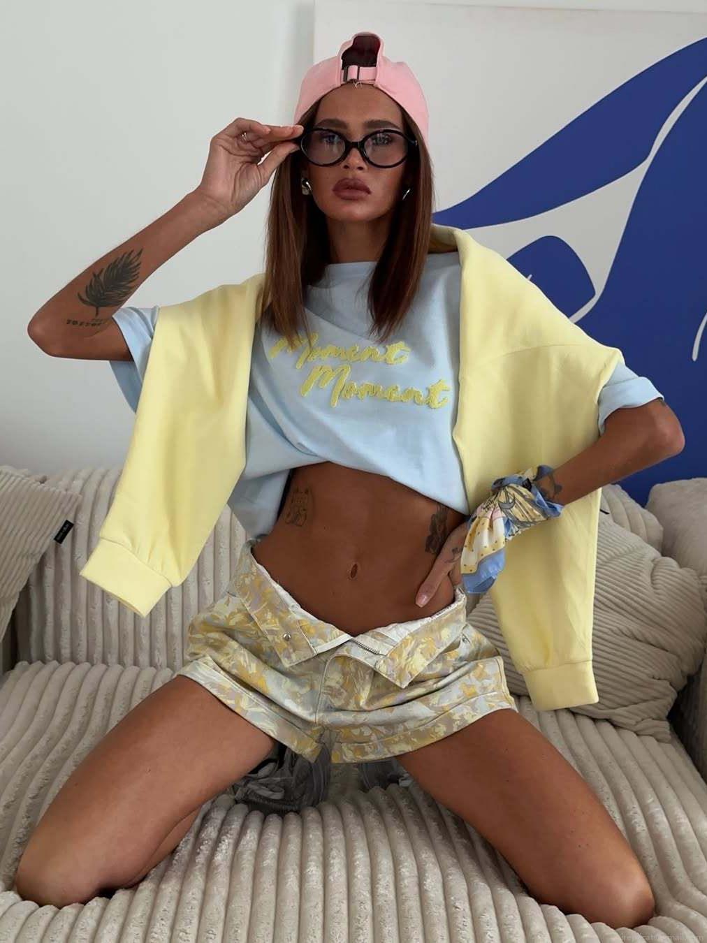• Women's Summer Casual Cotton Blend Knit T-Shirt Featuring Moment Letter Print Drop Shoulder Short Sleeve Loose Fit Streetwear Top For Ladies