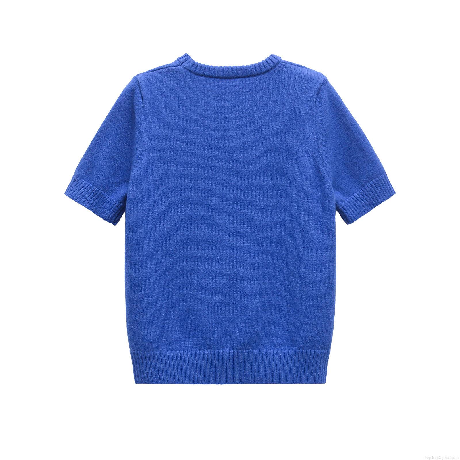 • Women's Summer Short Sleeve Knit Top Casual Round Neck Solid Color Polyester Blend T-Shirt Soft Breathable Streetwear Style Pullover Knitwear For Women