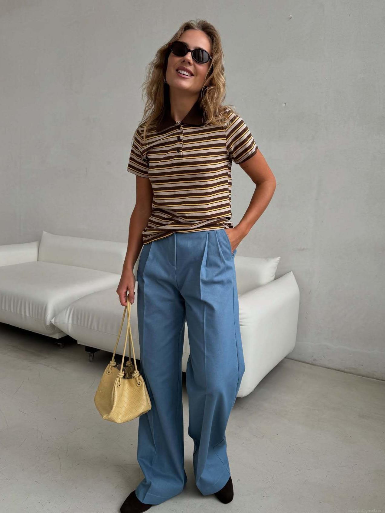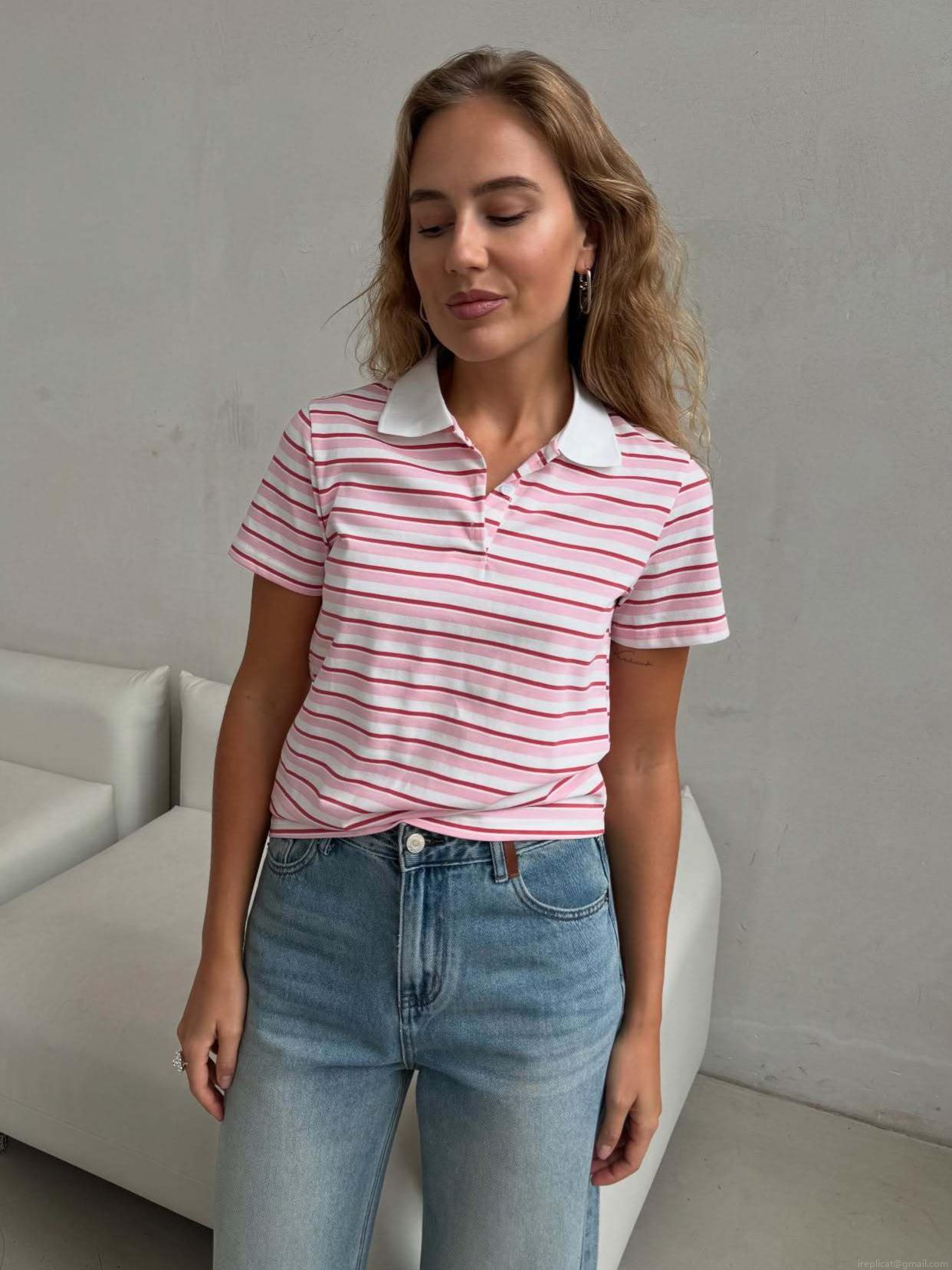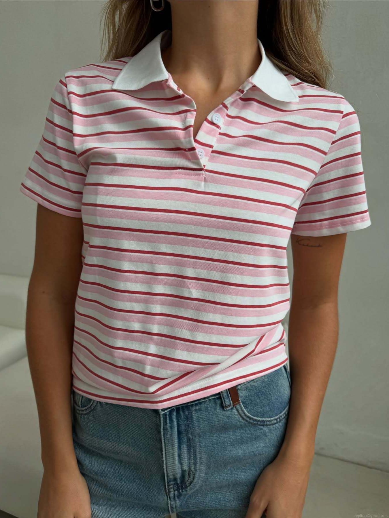 • Women's Summer Striped Polo Shirt Short Sleeve Lapel Cotton Blend Casual Streetwear Top Fashion Striped Tee For Daily Vacation