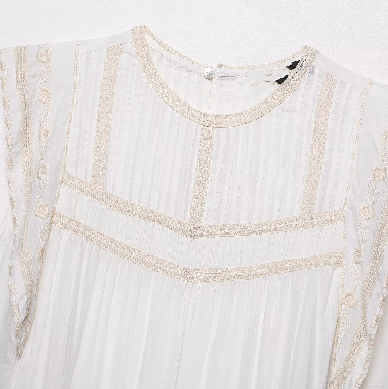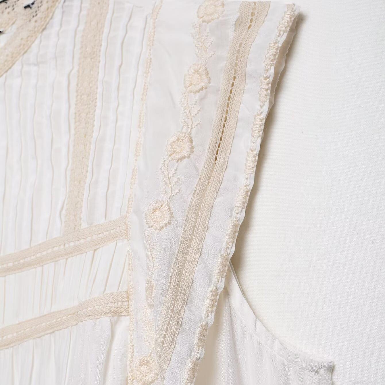 Solid Color, Embroidery, Hollow Out, Lace Patchwork, Accordion Pleats, Floral Embroidery