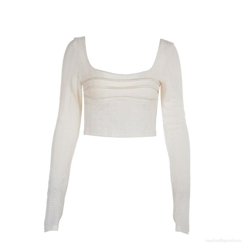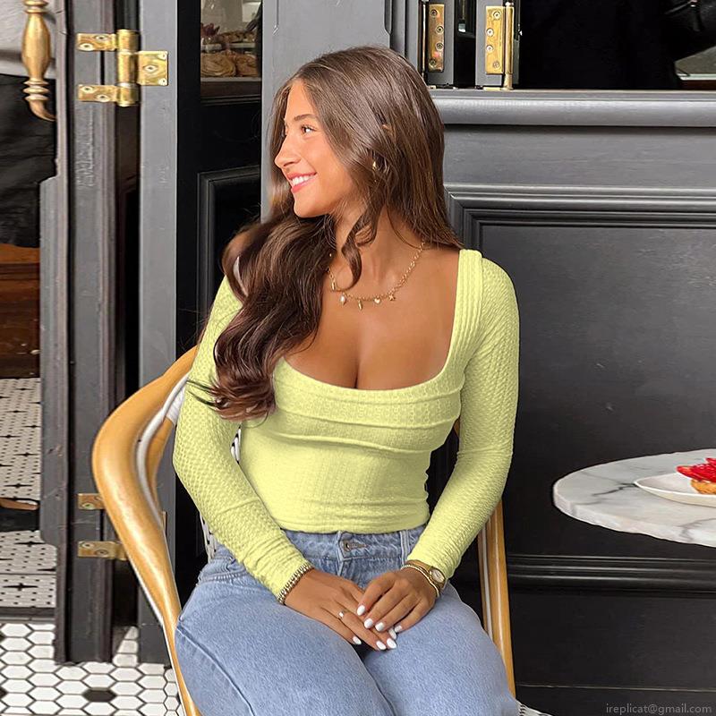• Women's Textured Fabric Square Neck Long Sleeve Top Backless Lace-up Slim Fit Crop T-Shirt Fashion Casual Streetwear Pullover for Autumn Spring