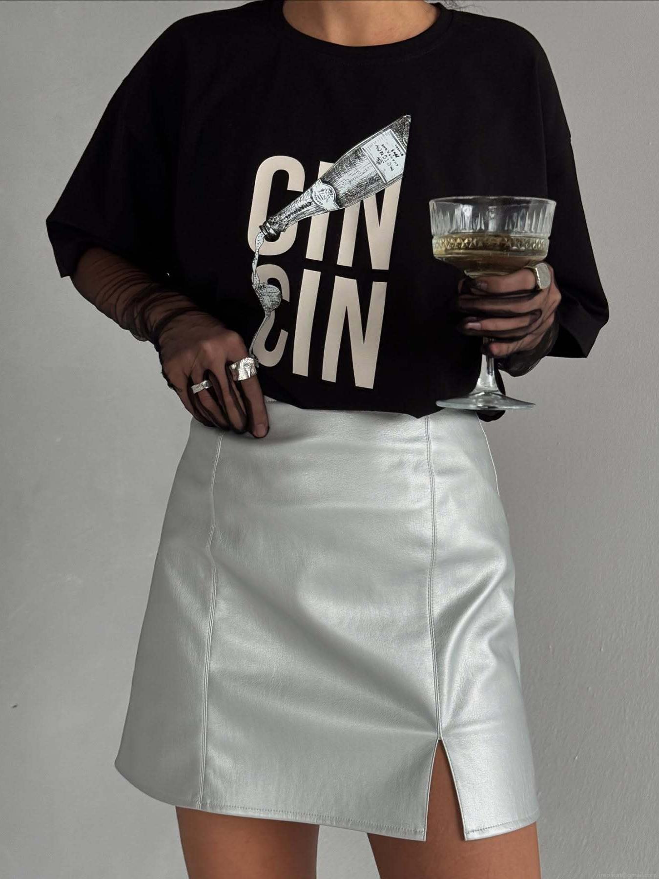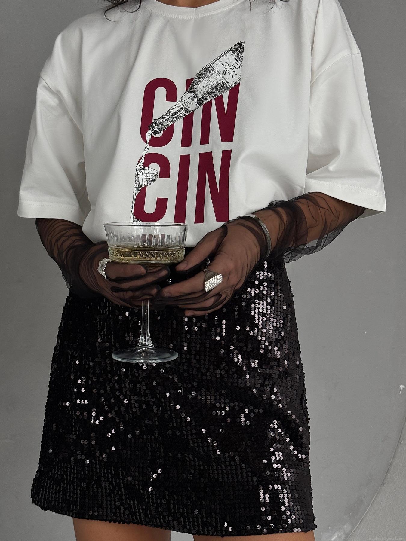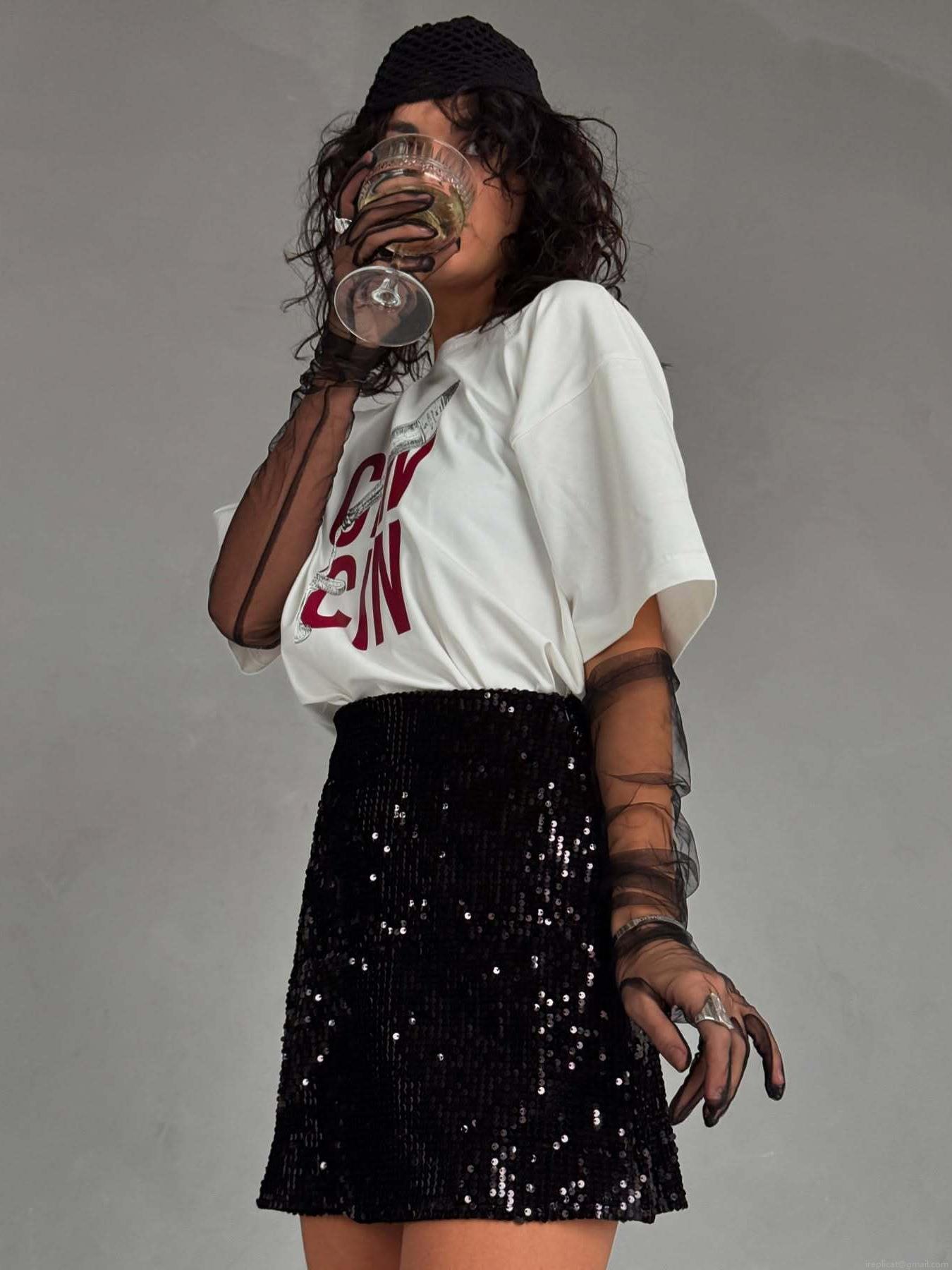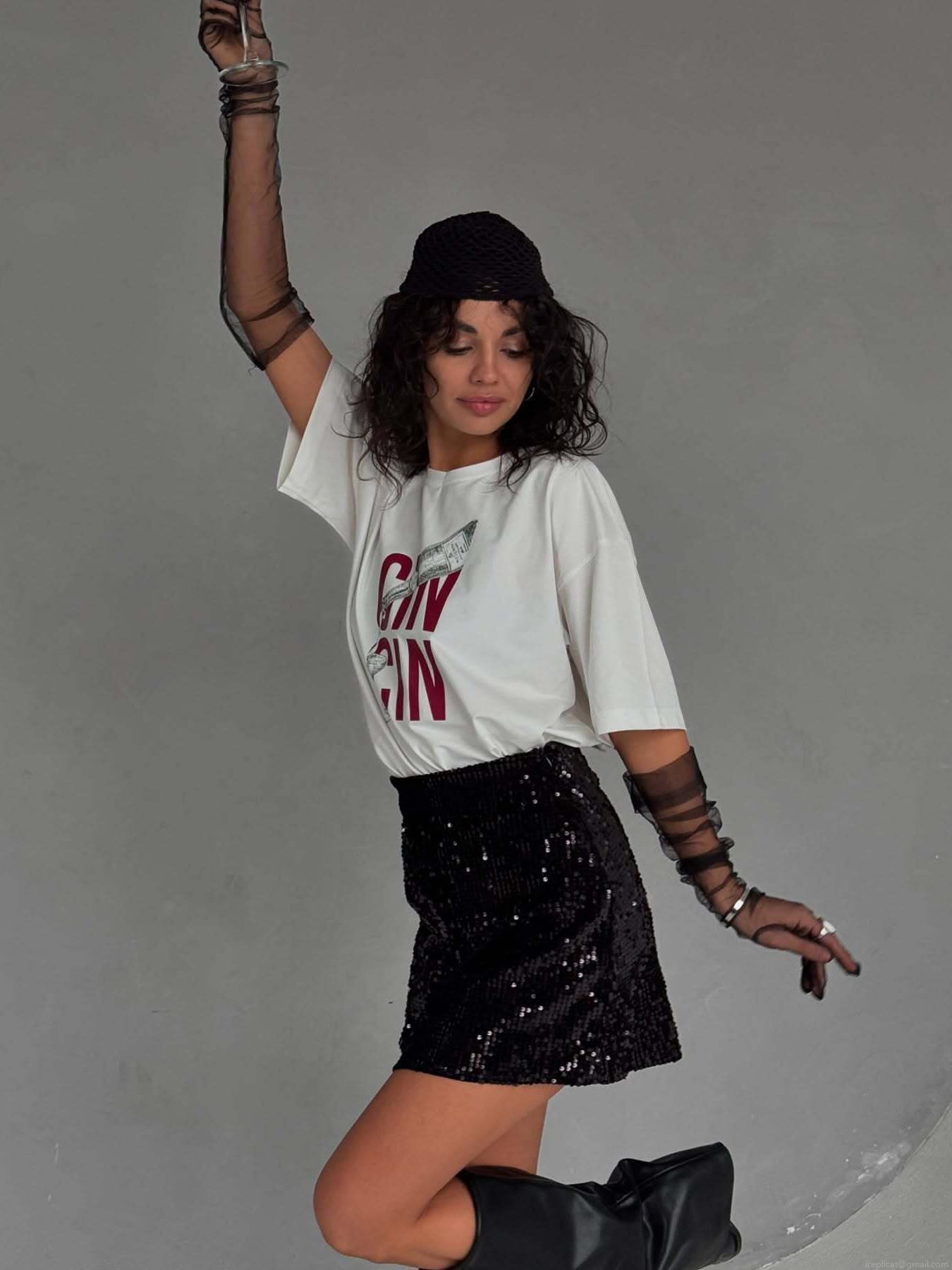 Letters, Color Blocking, Printing, Letter Print, Loose Fit, Wine Bottle Illustration
