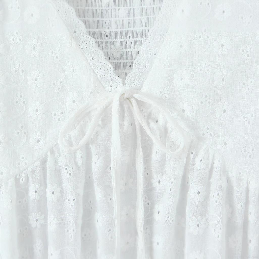 Hollow Out, Pleats, Ruffles, Lace Trim, Lace, Puff Sleeves, Floral Embroidery, Hollowed-out Eyelets