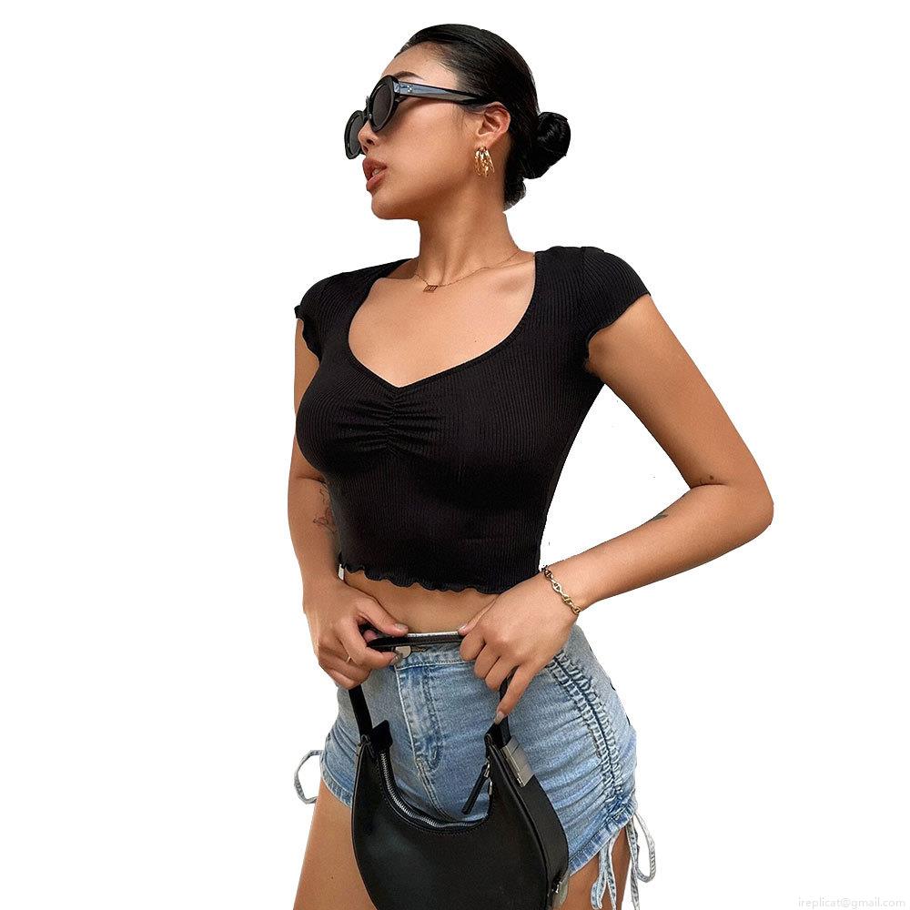 Solid Color, Wood Ear Edge, Pleats, Ribbed, Navel Exposed