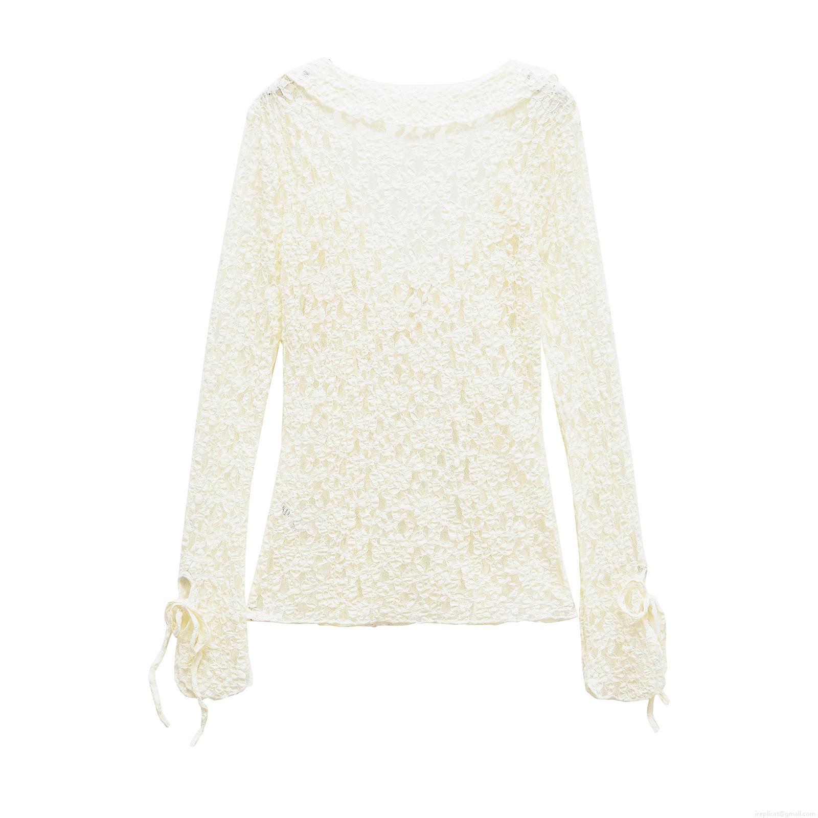 • Women's V-Neck Lace Top French Retro Ruffle Long Sleeve Blouse With Bow Tie Cuffs Polyester Spandex Solid Color Elegant Celebrity Style Spring Autumn Apparel