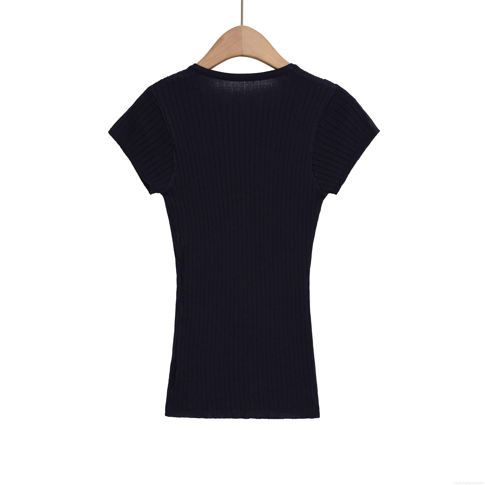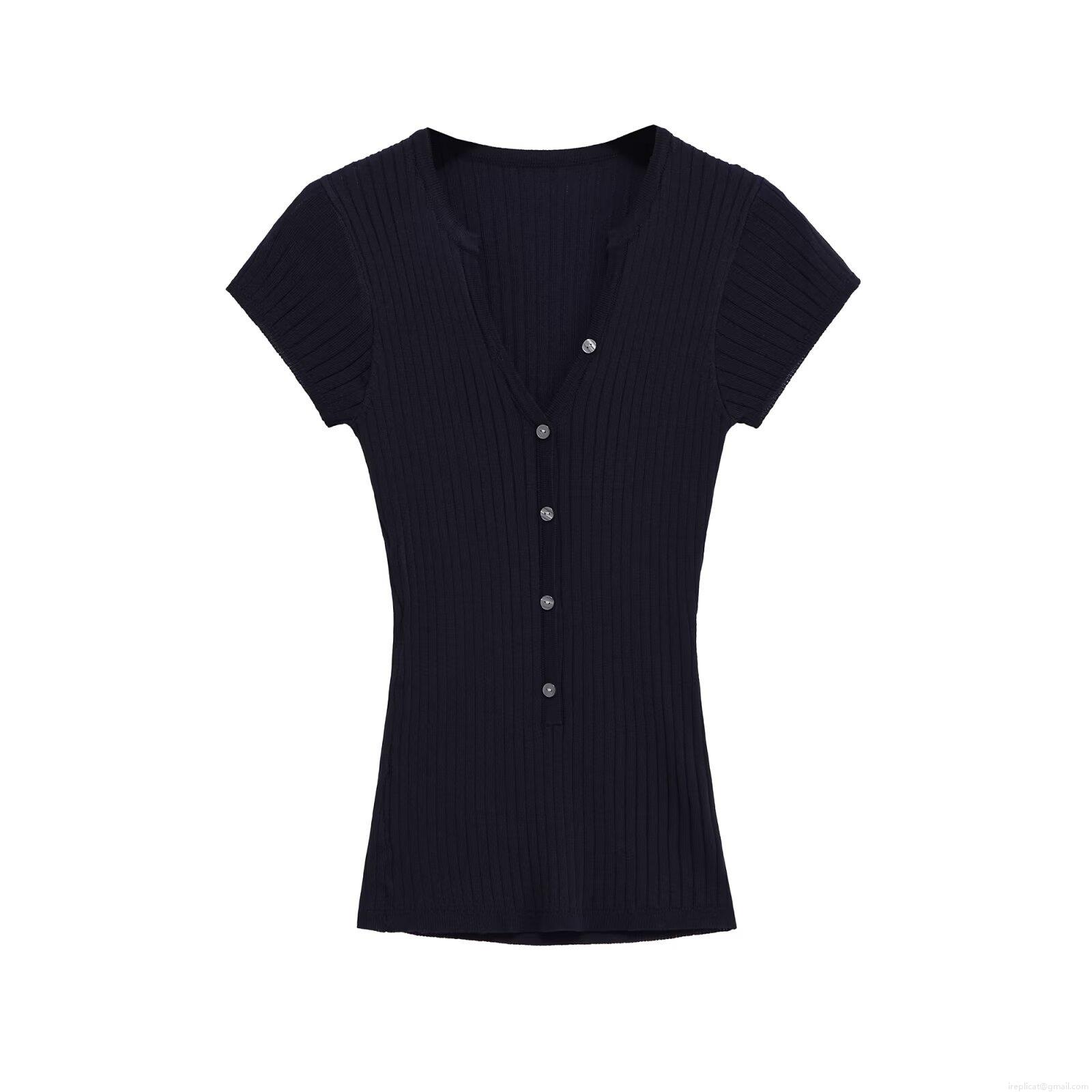 • Women's V-Neck Slim Fit Knit T-Shirt Ribbed Viscose Nylon Blend Short Sleeve Single Breasted Button Down Solid Color Casual Summer Top