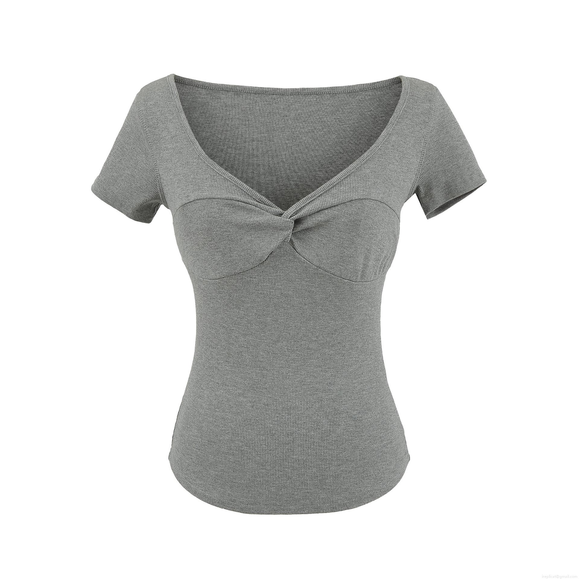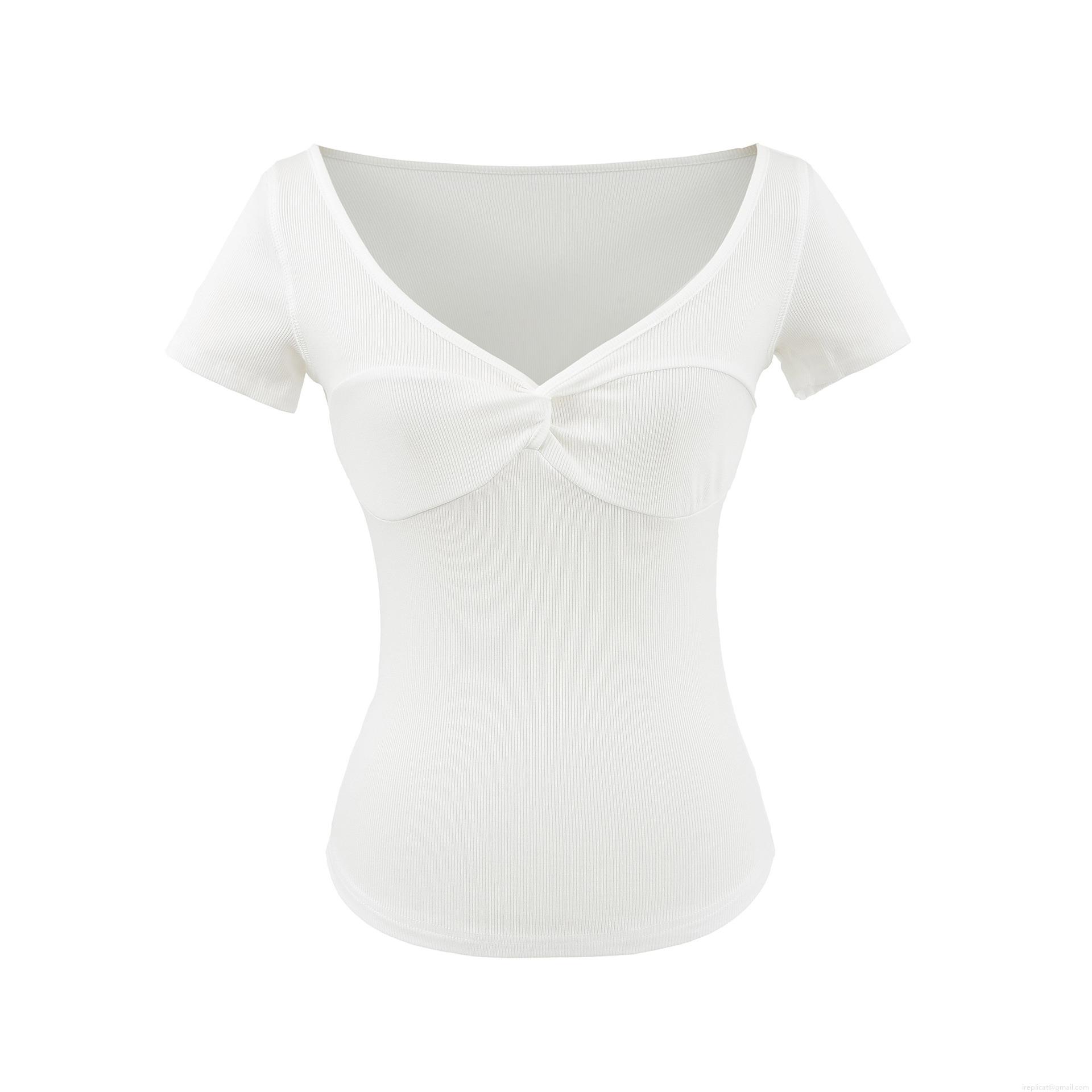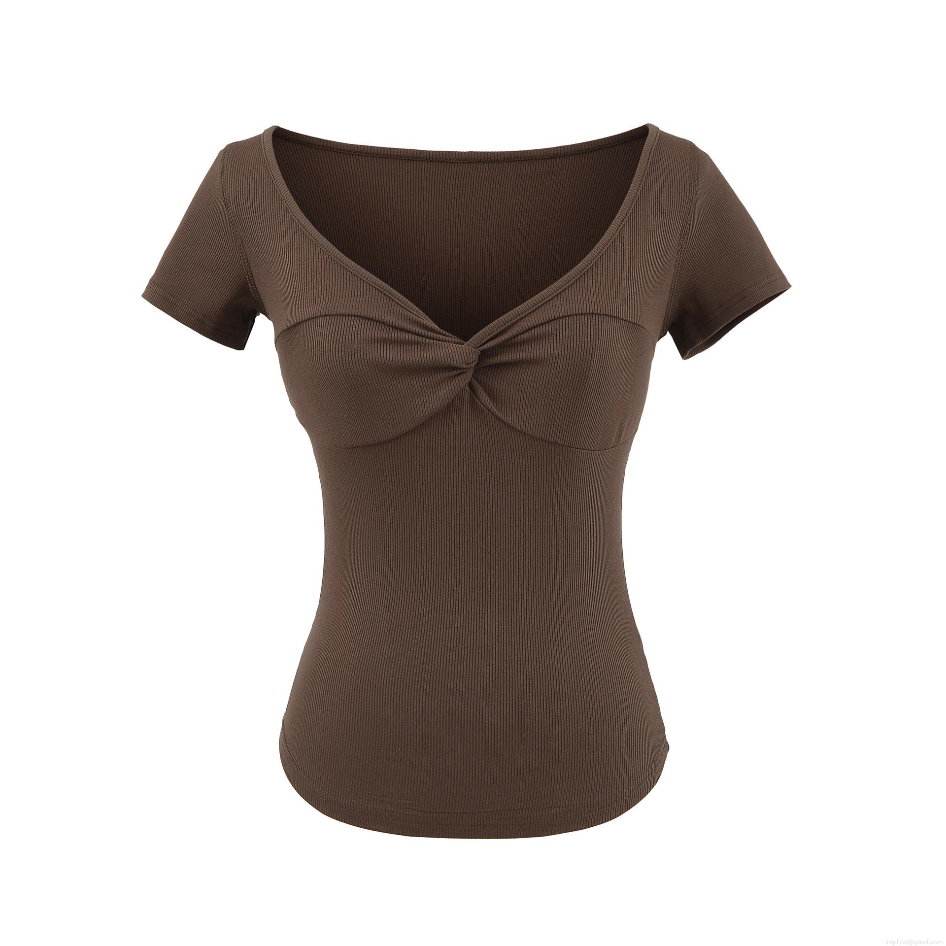 Women's V-Neck Twist Front T-Shirt Ribbed Knit Viscose Elastane Slim Fit Short Sleeve Summer Top For Daily Casual Streetwear