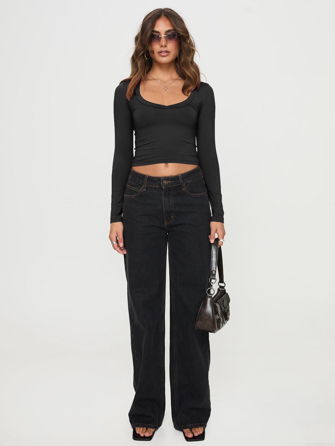 • Women's Y2K Sexy Long Sleeve Crop Top Slim Fit Knitted Round Neck T-Shirt Solid Color Base Layer Top For Daily Streetwear Casual Wear
