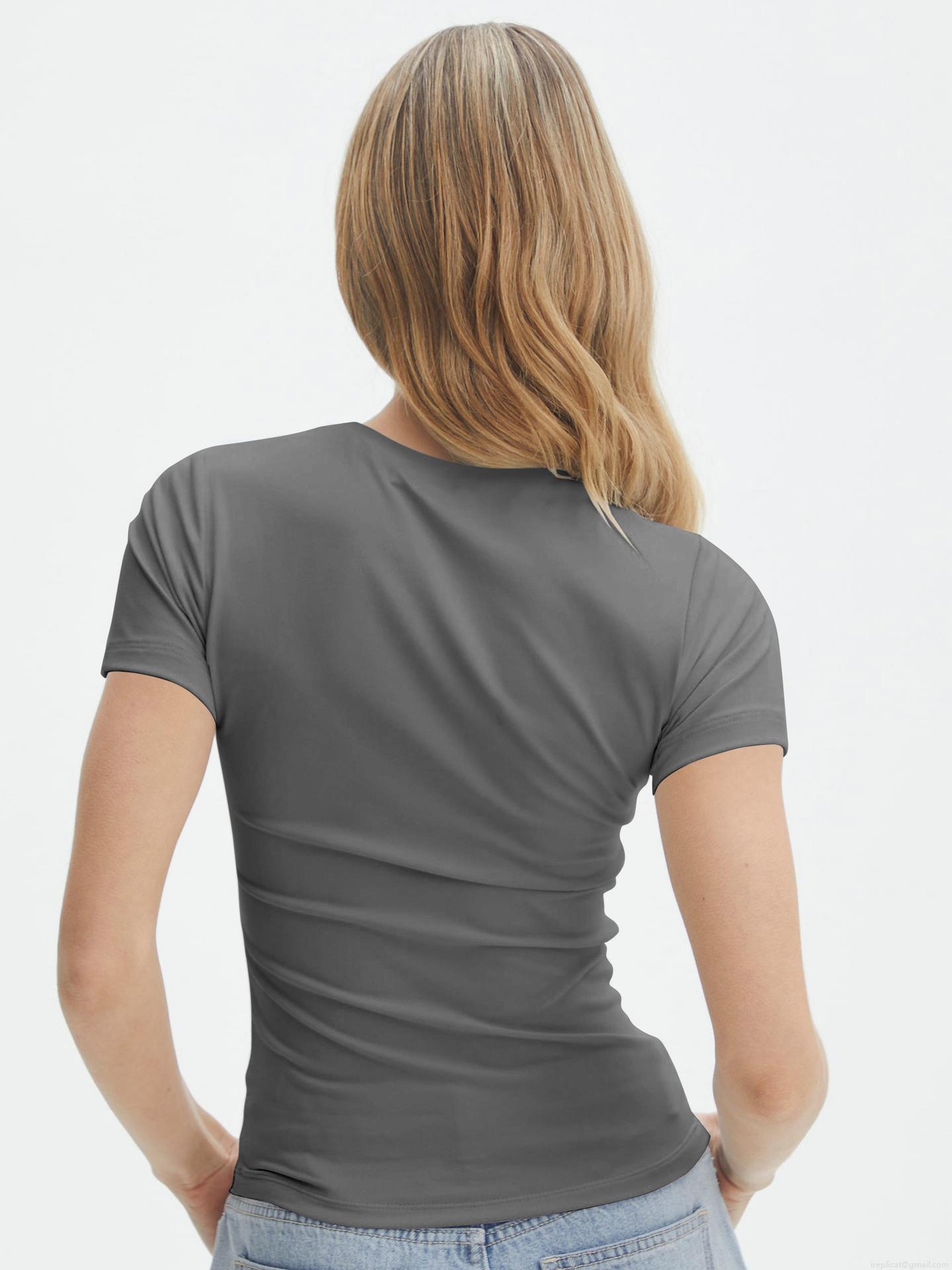 • Women's Y2K Sexy Slim Fit Solid Color Round Neck Short Sleeve T-Shirt Trendy Streetwear Basic Tee Top For Daily Dating Club Women Clothing